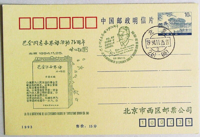 1994年巴金同志世界语活动76周年明信片