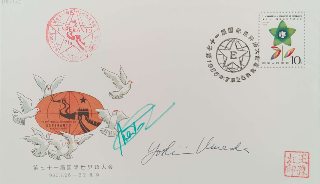 1986年梅田善美签名的北京第71届国际世界语大会首日封