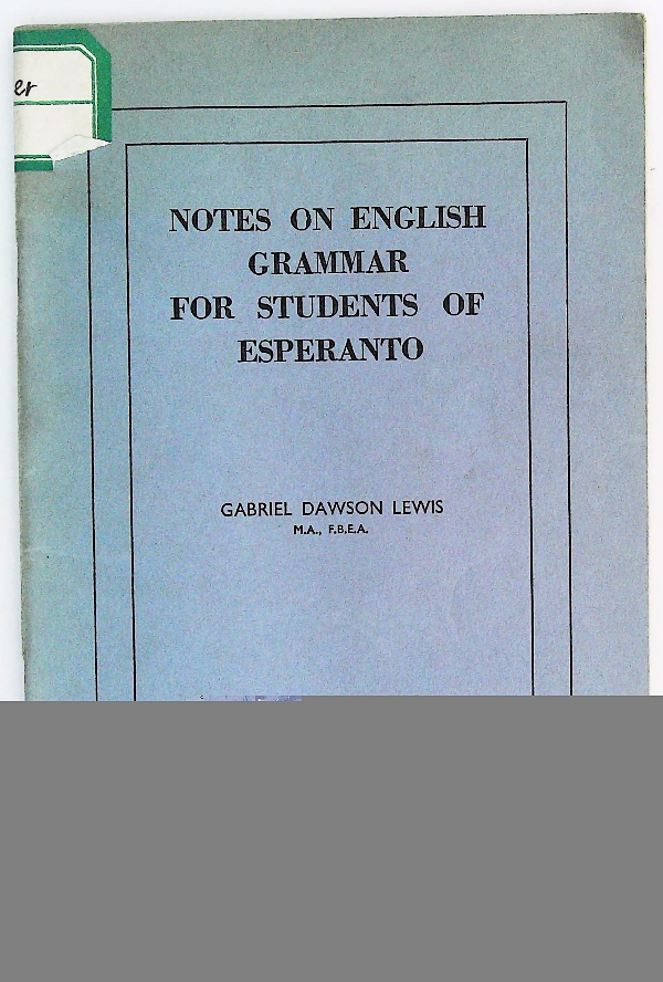 NOTES ON ENGLISH GRAMMAR FOR STUDENTS OF ESPERANTO