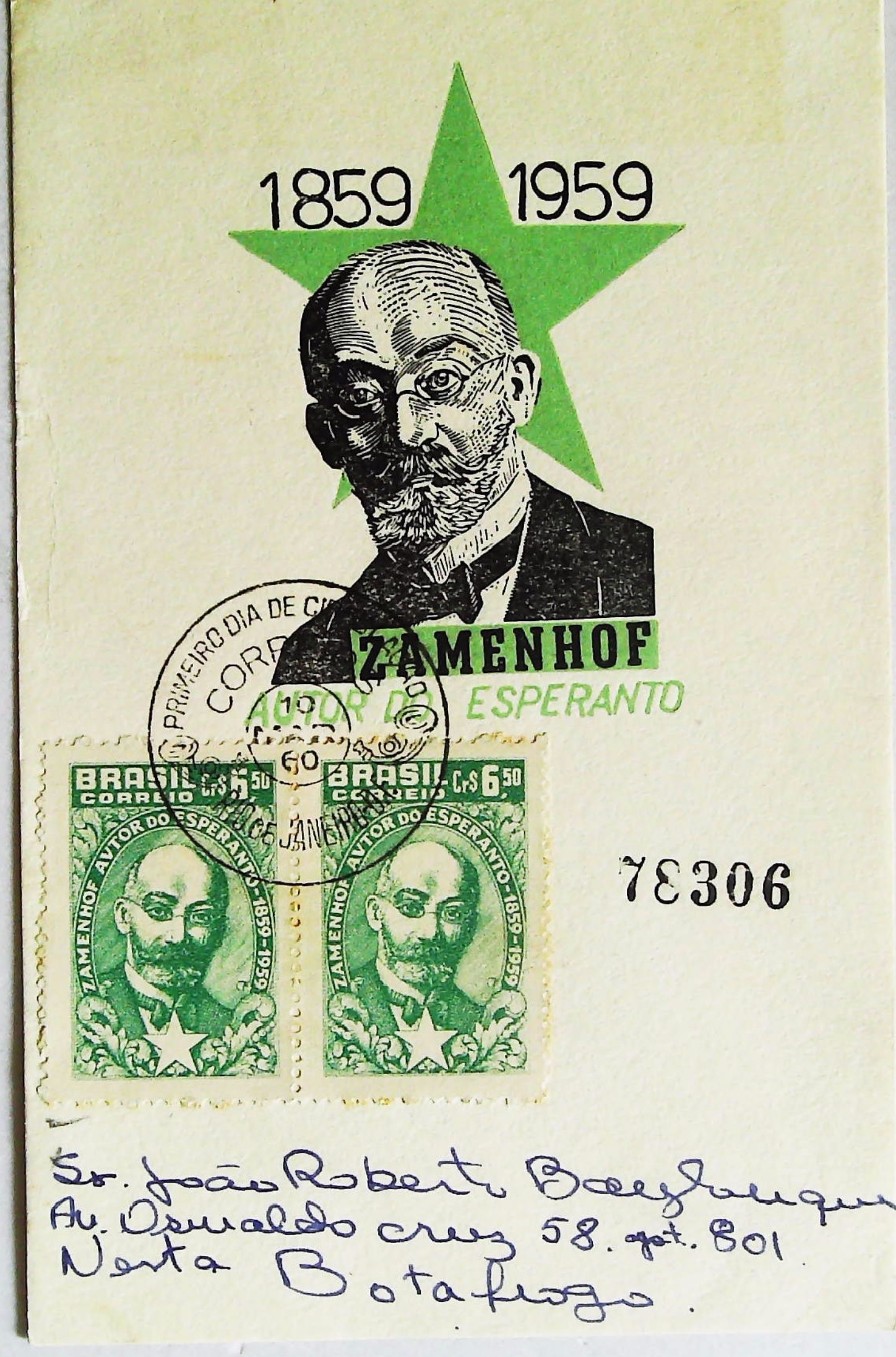 1959年巴西印制柴门霍夫诞辰100周年邮卡
