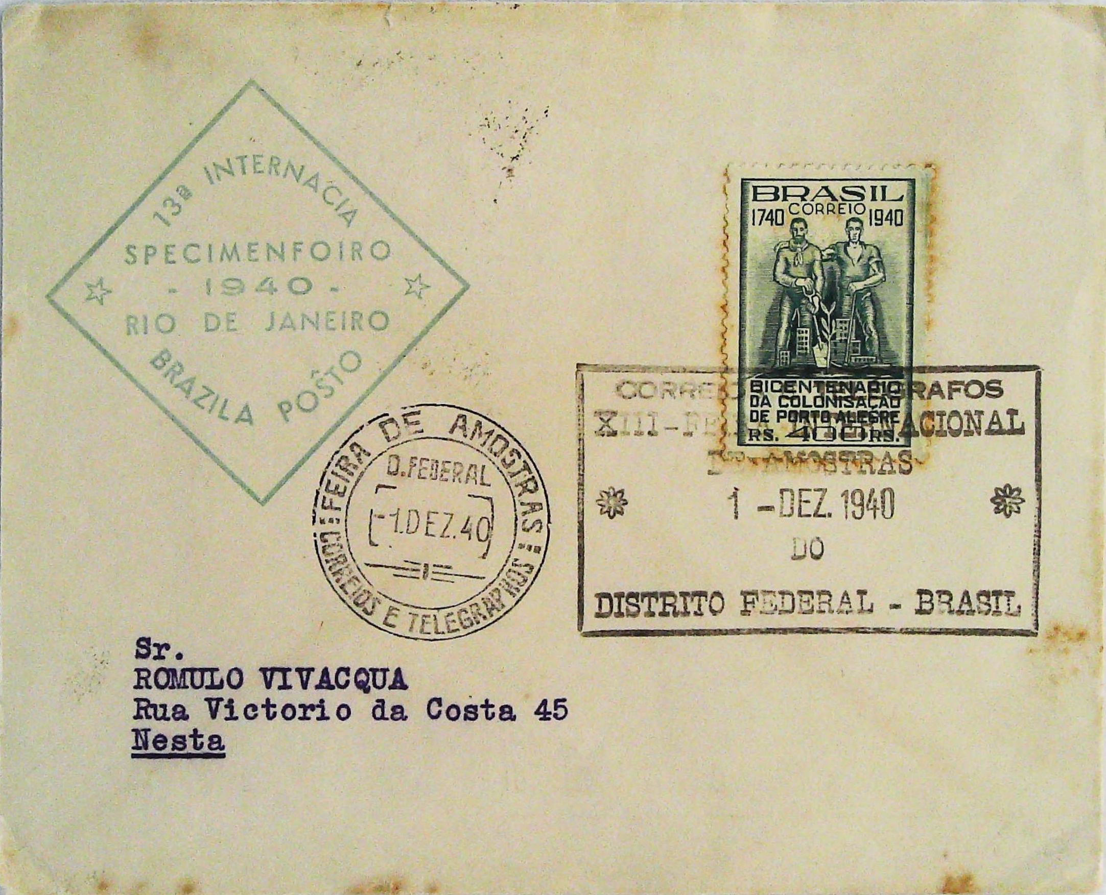 1940年巴西第13届国际博览会实寄明信片