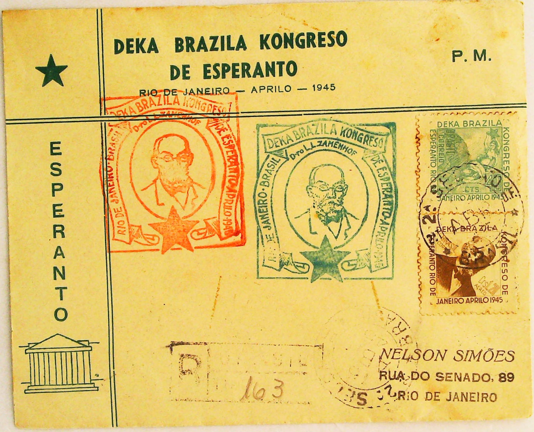 1945年里约第10届巴西世界语大会实寄明信片