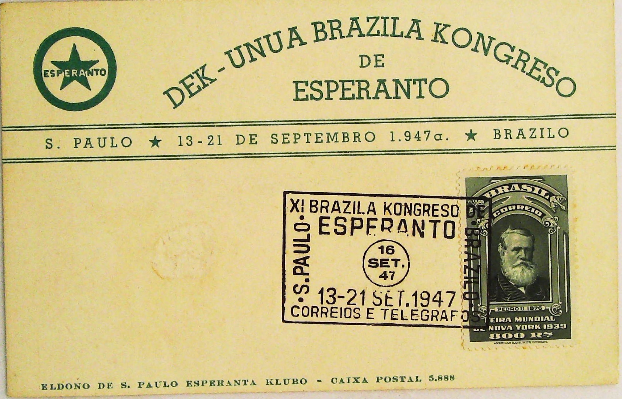 1947年圣保罗第11届巴西世界语大会明信片