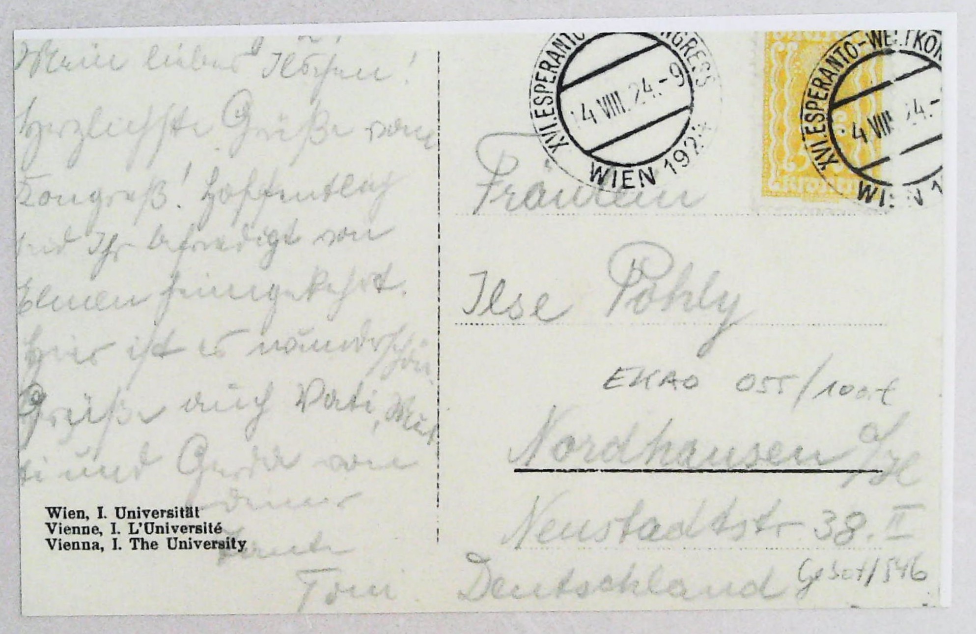1924年维也纳第16届国际世界语大会纪念戳明信片