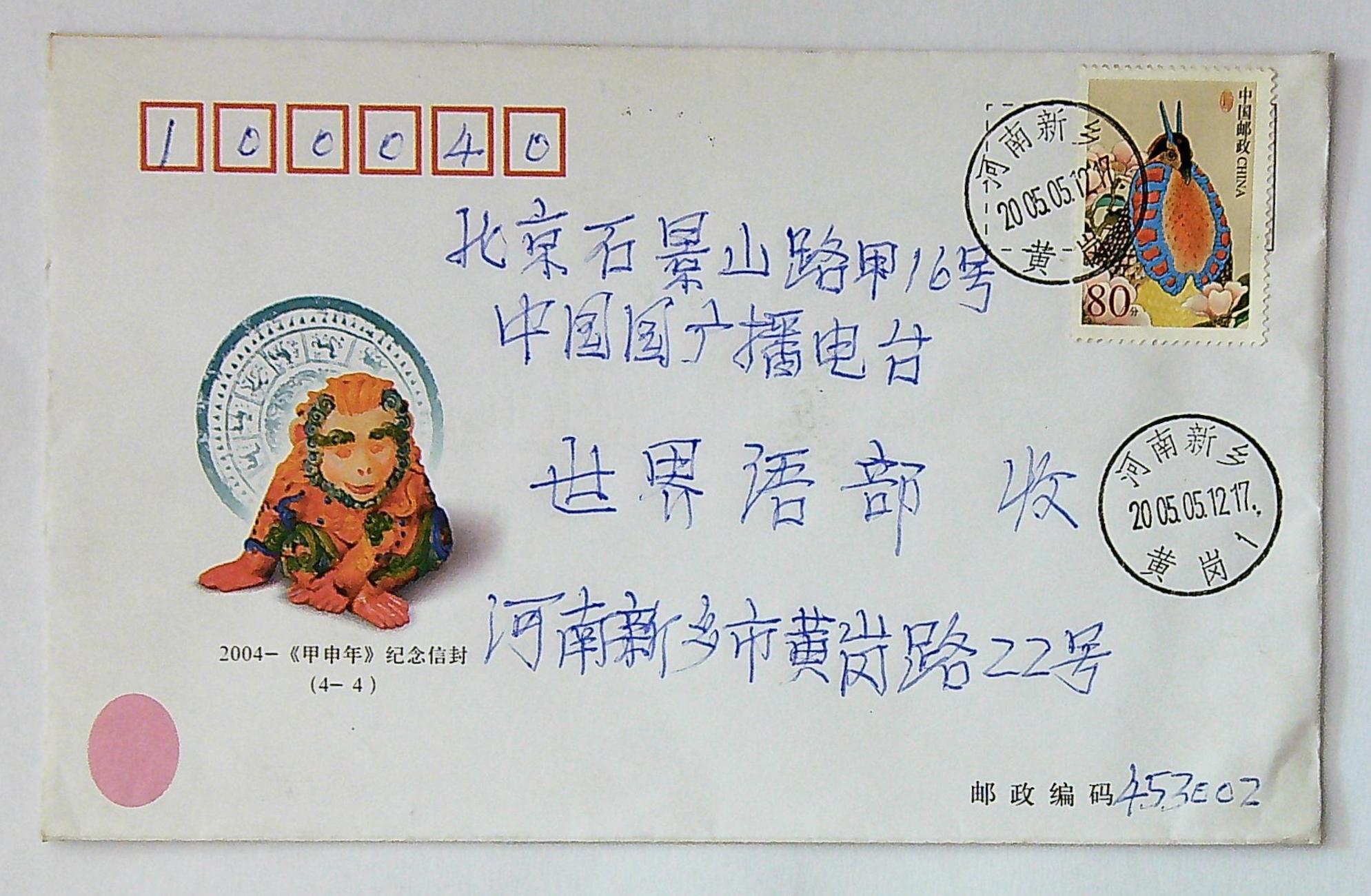 2005年5月9日卢万仪致给赵建平写信的信封