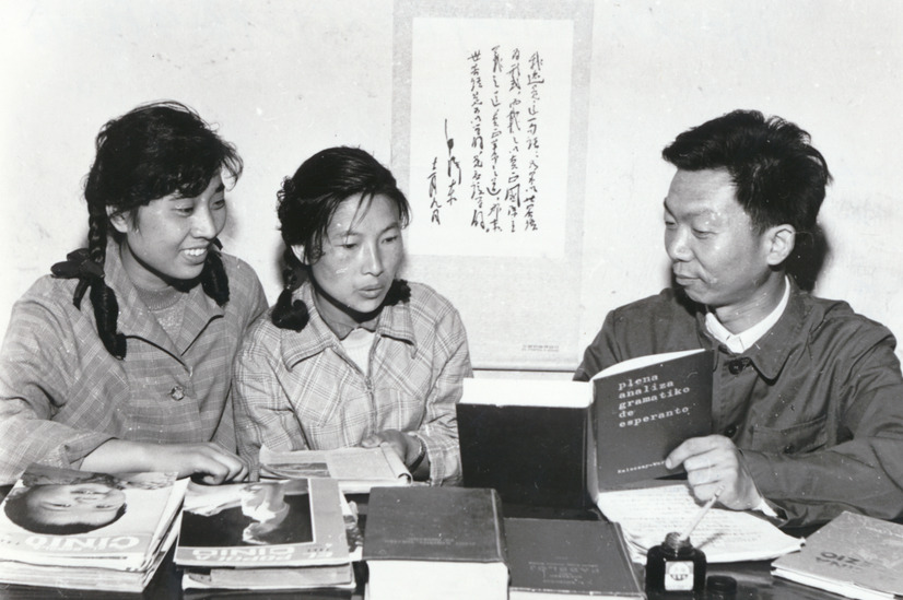 杨海春在辅导青年学习世界语