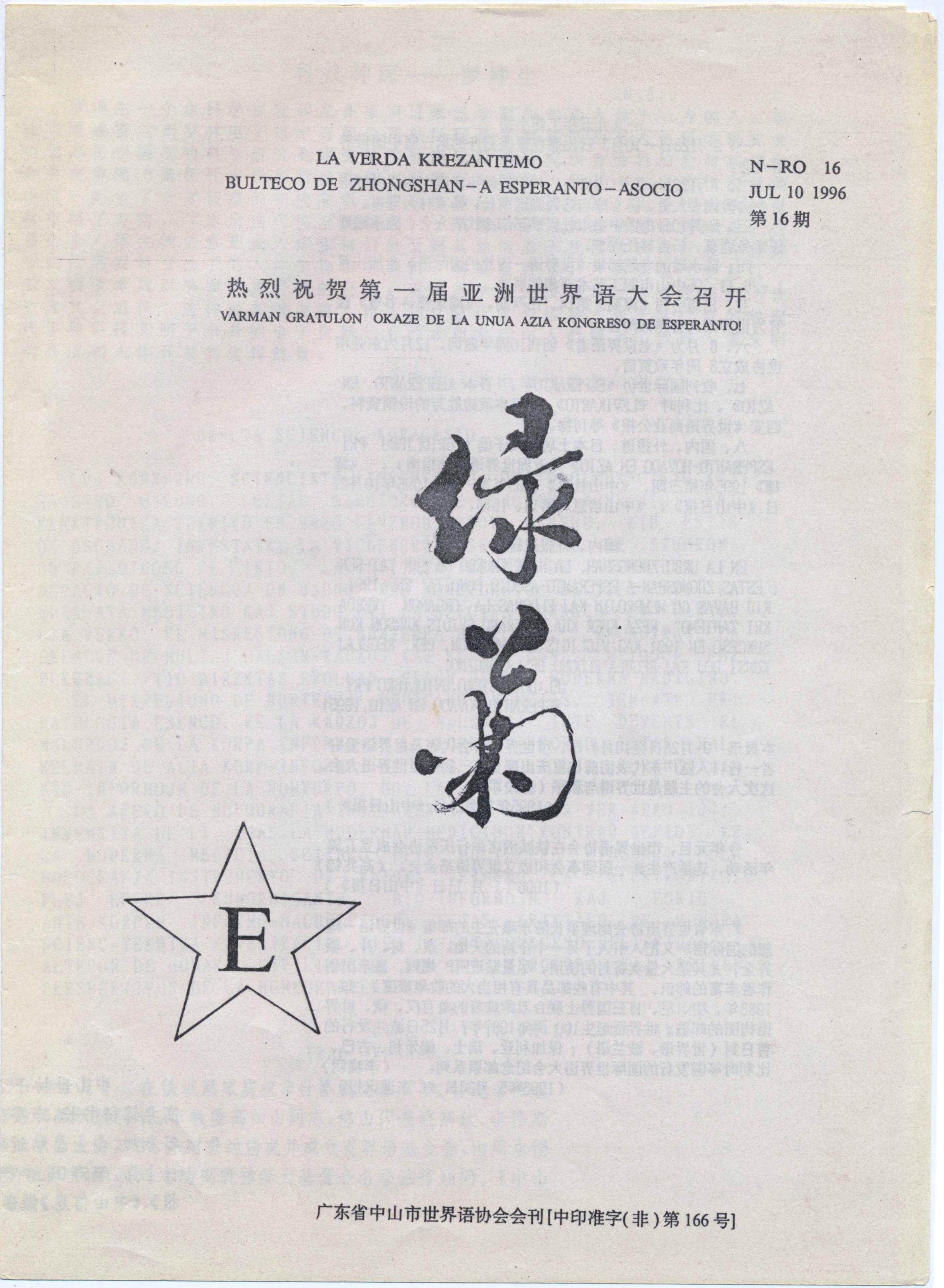 中山市世界语协会《绿菊》1996年第16期