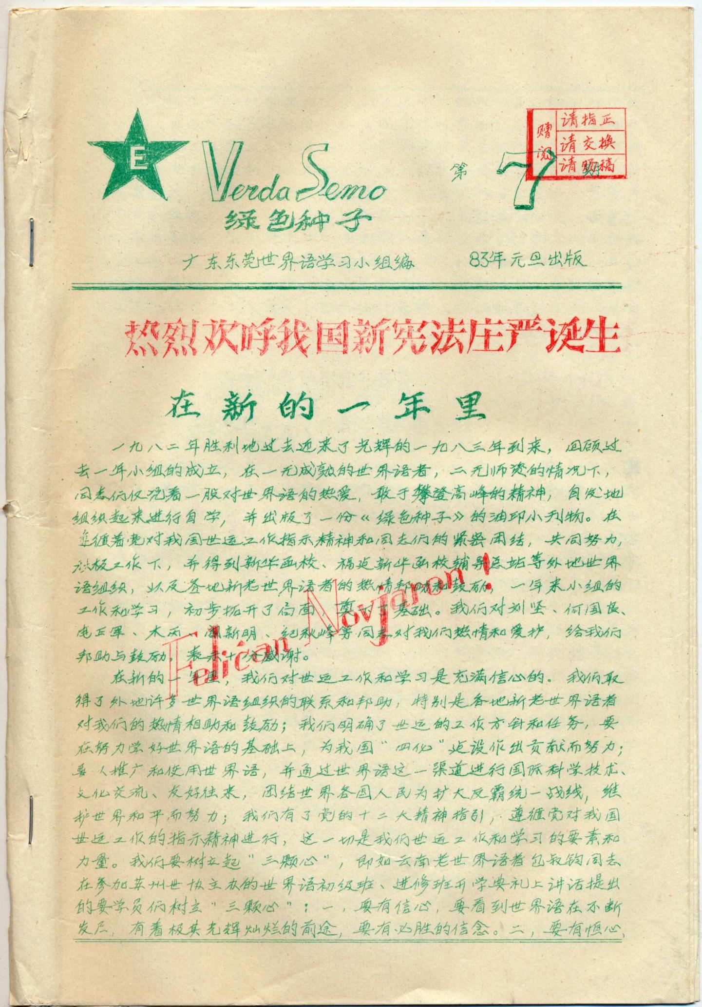 广东东莞世界语学习小组《绿色的种子》1983年第7-12期