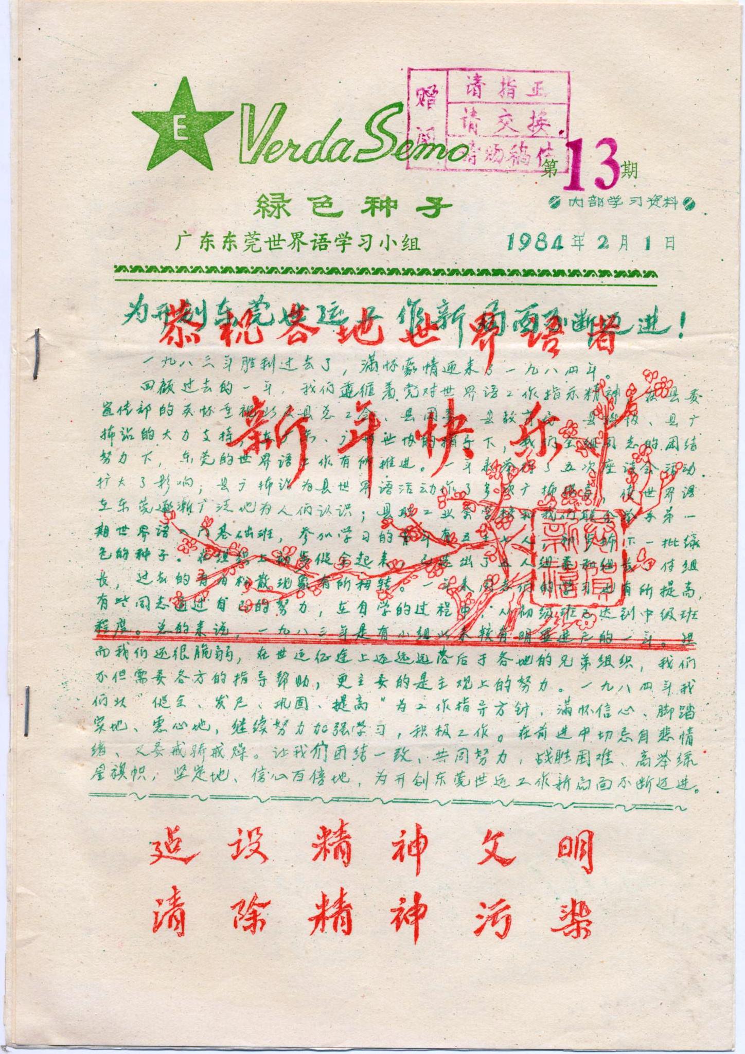 广东东莞世界语学习小组《绿色的种子》1984年第13-18期