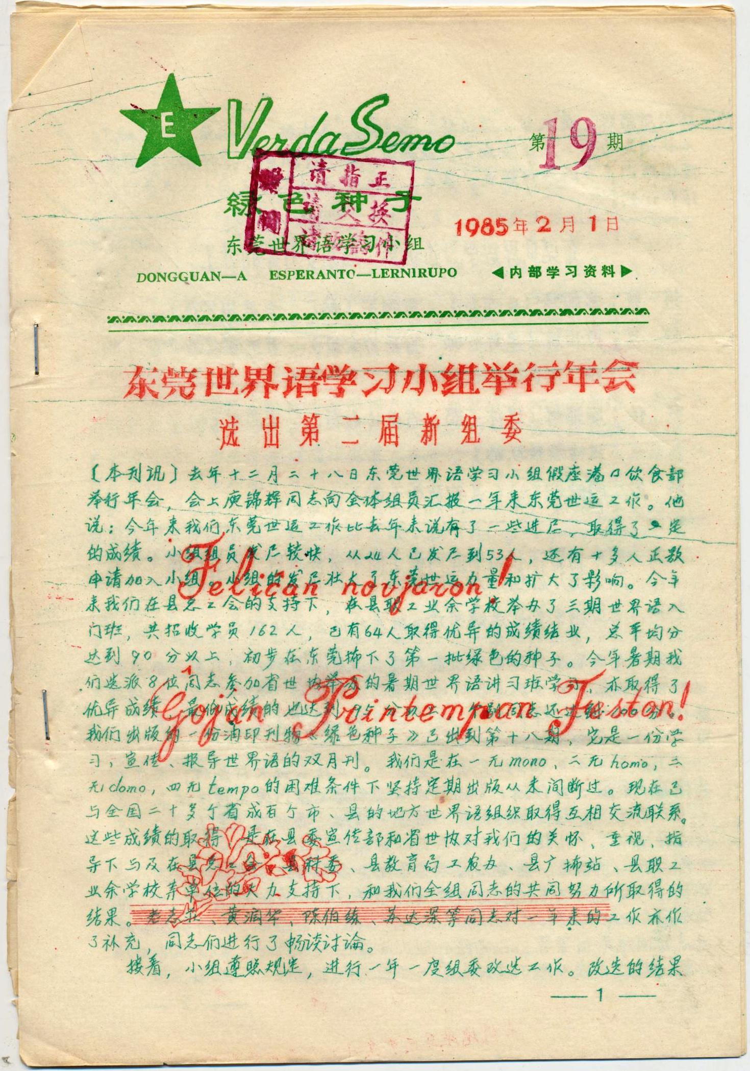 广东东莞世界语学习小组《绿色的种子》1985年第19-24期