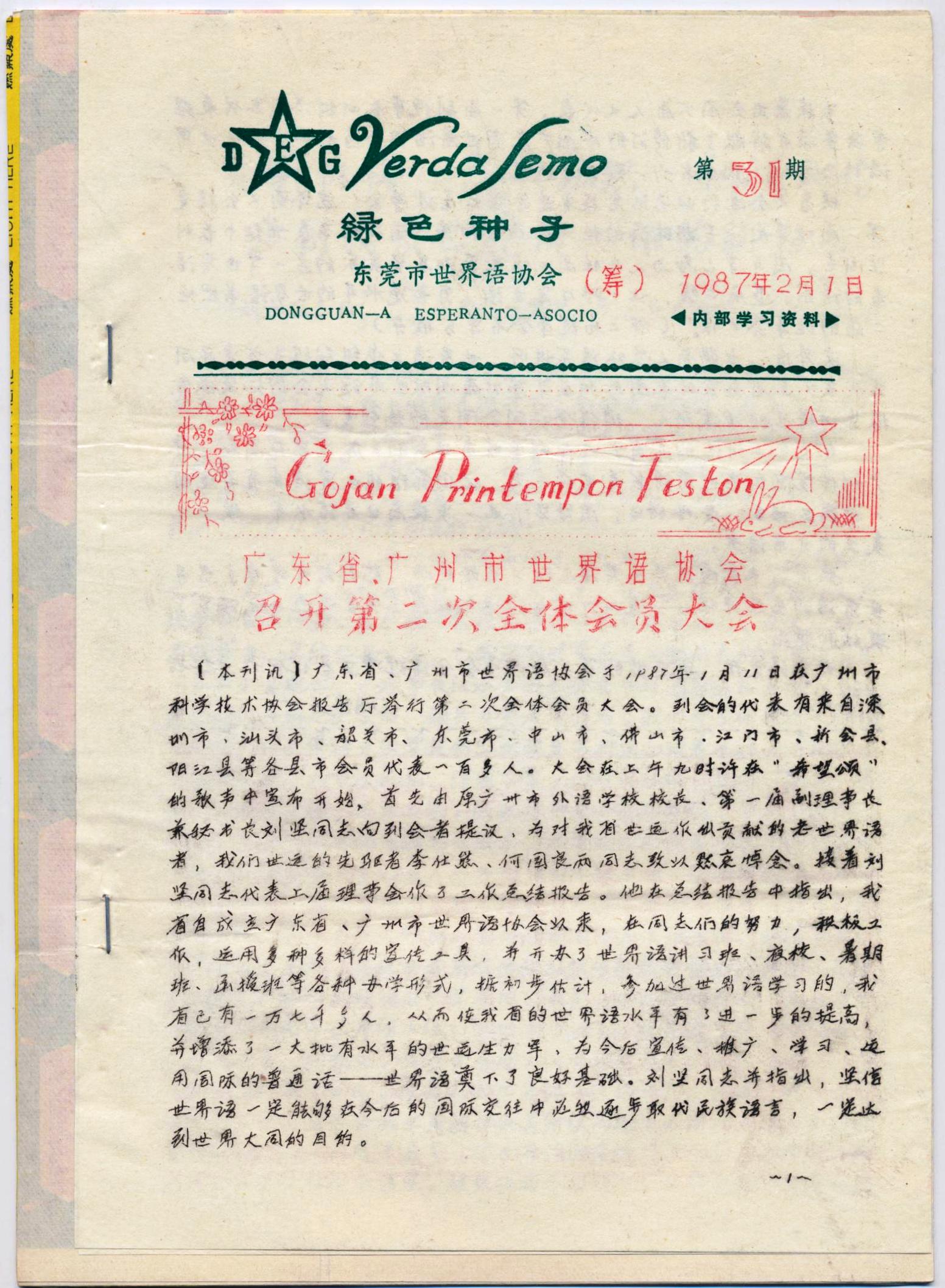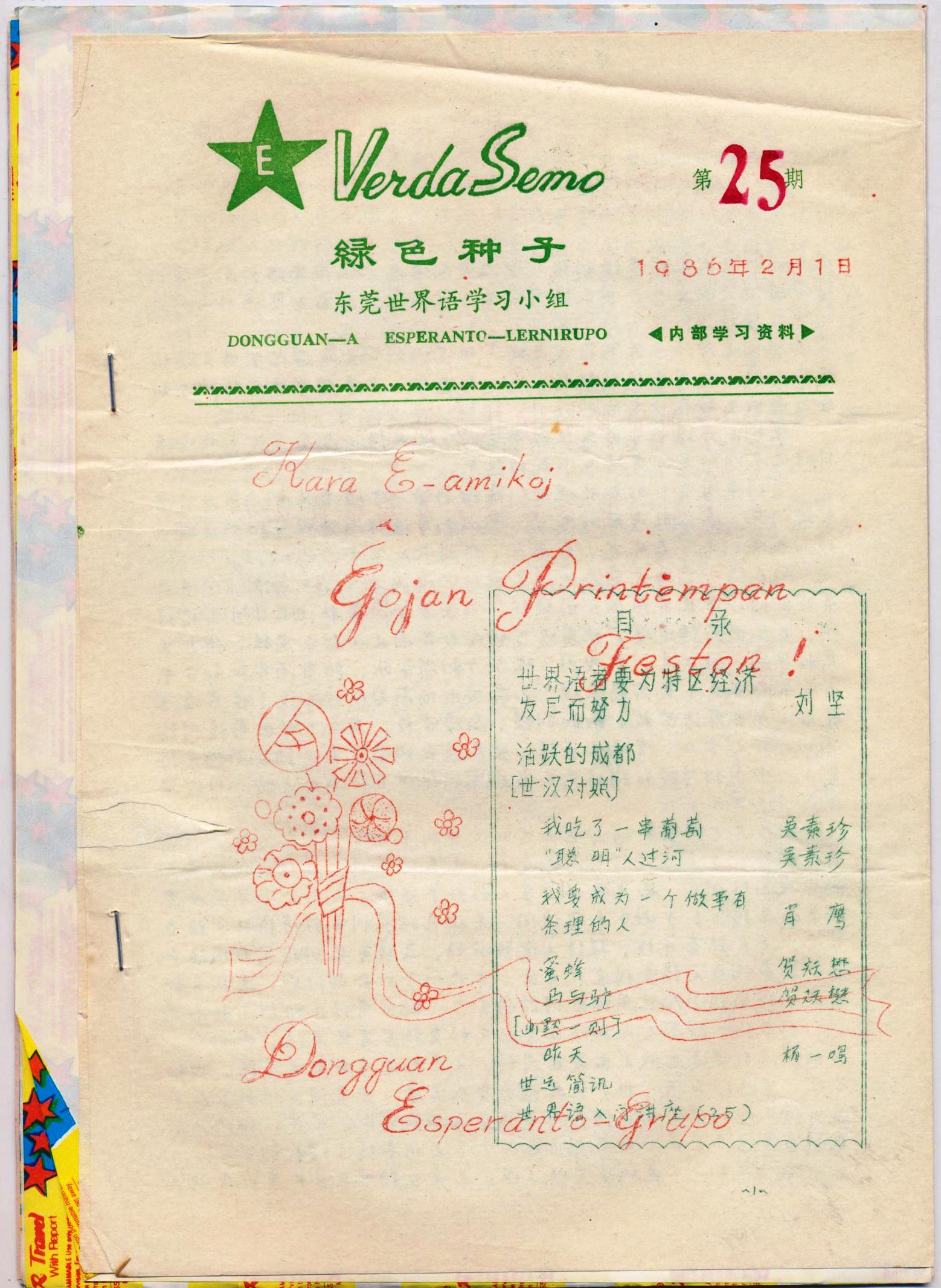 广东东莞世界语学习小组《绿色的种子》1986年第25-30期