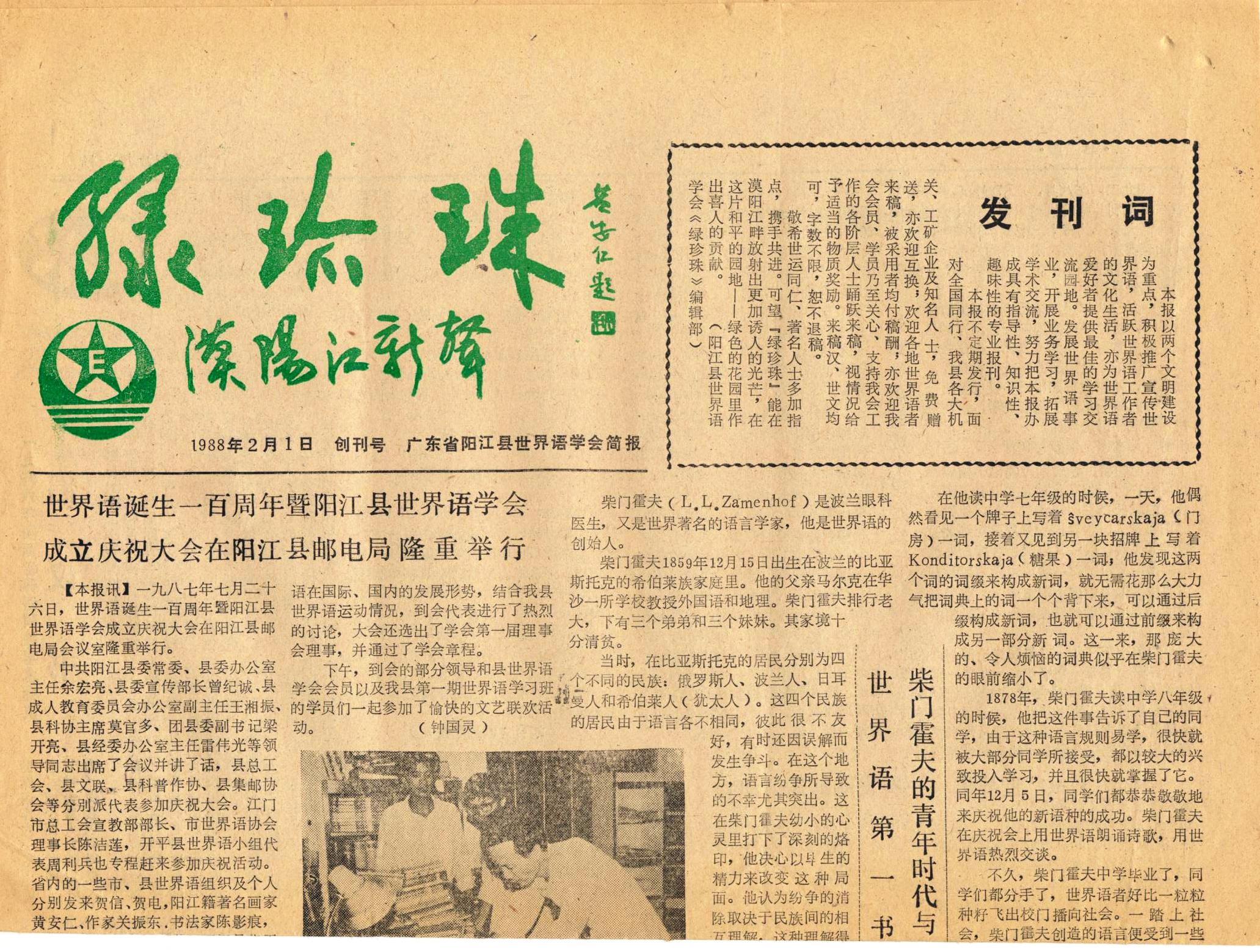 广东省阳江县世界语学会简报