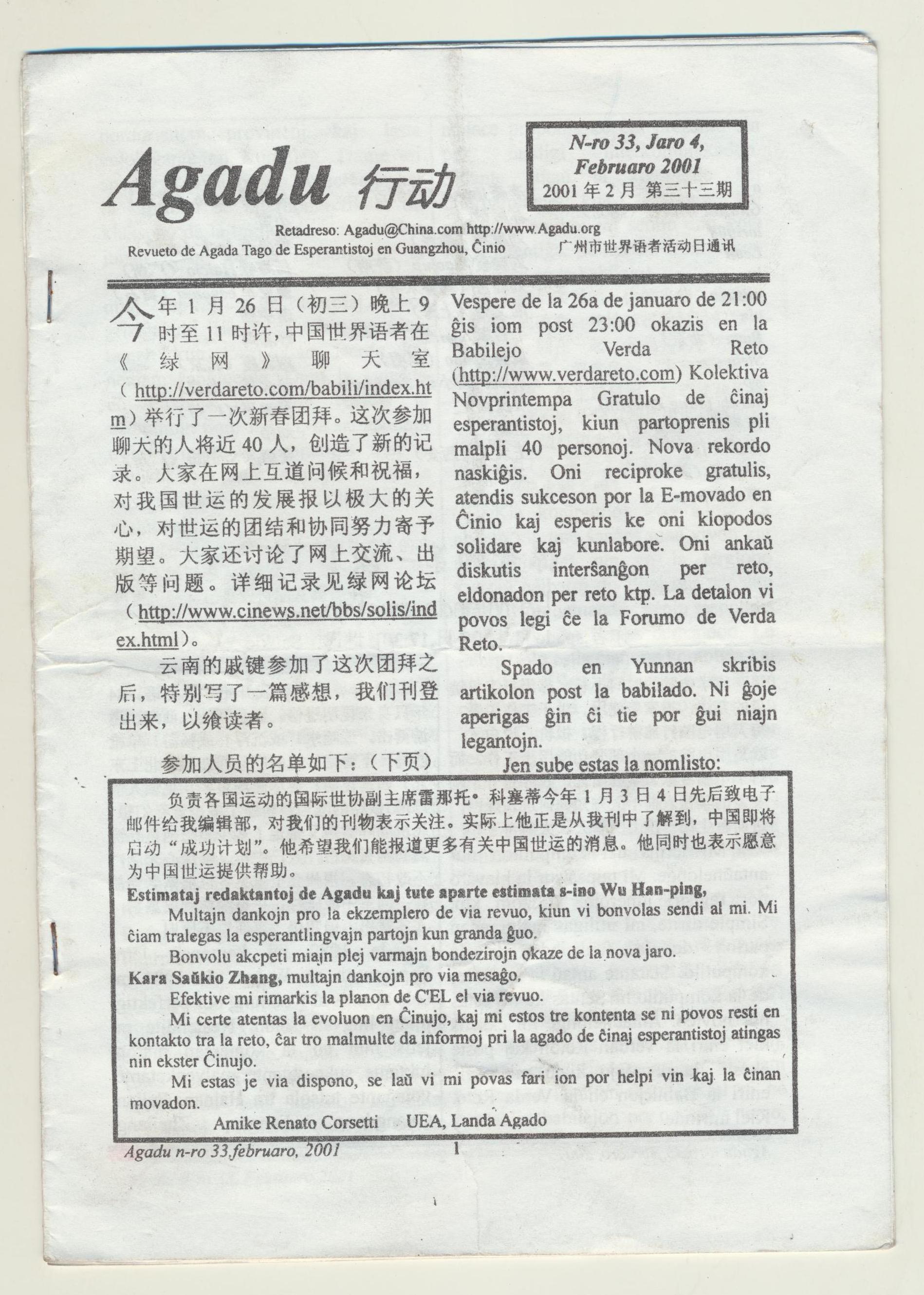 广州世界语者活动日小刊《Agadu》2001第33、34期