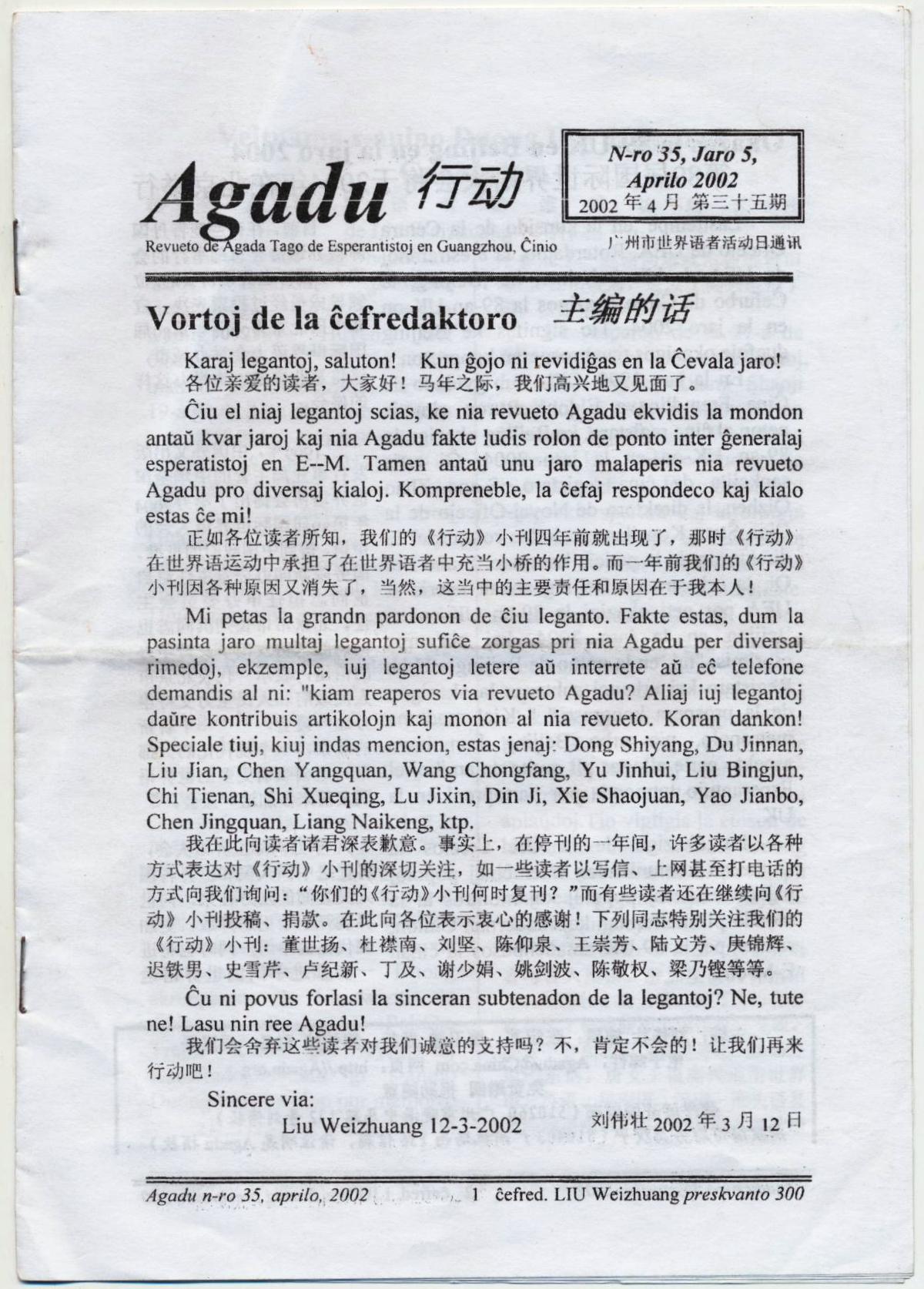 广州世界语者活动日小刊《Agadu》2002第35、36期