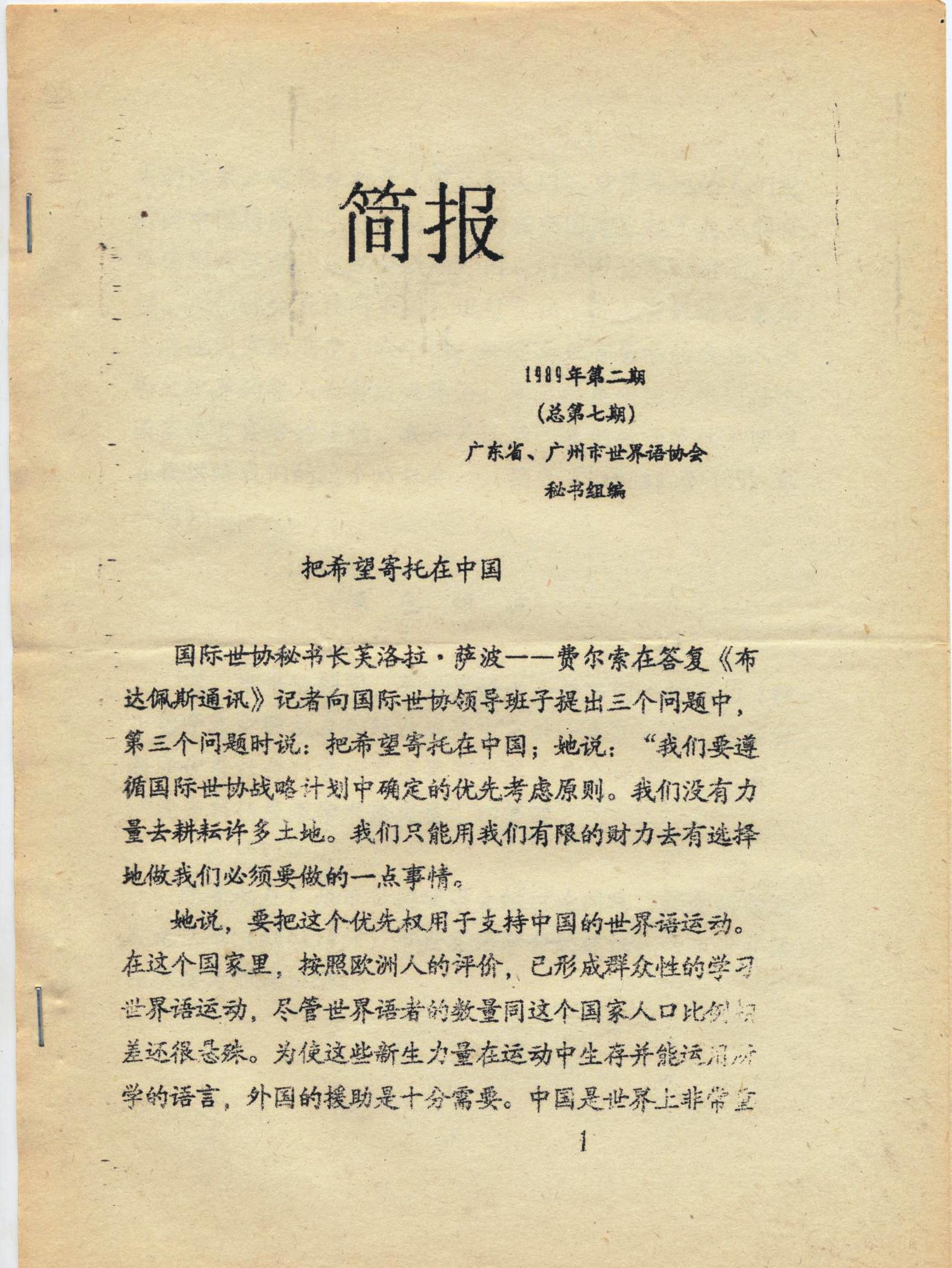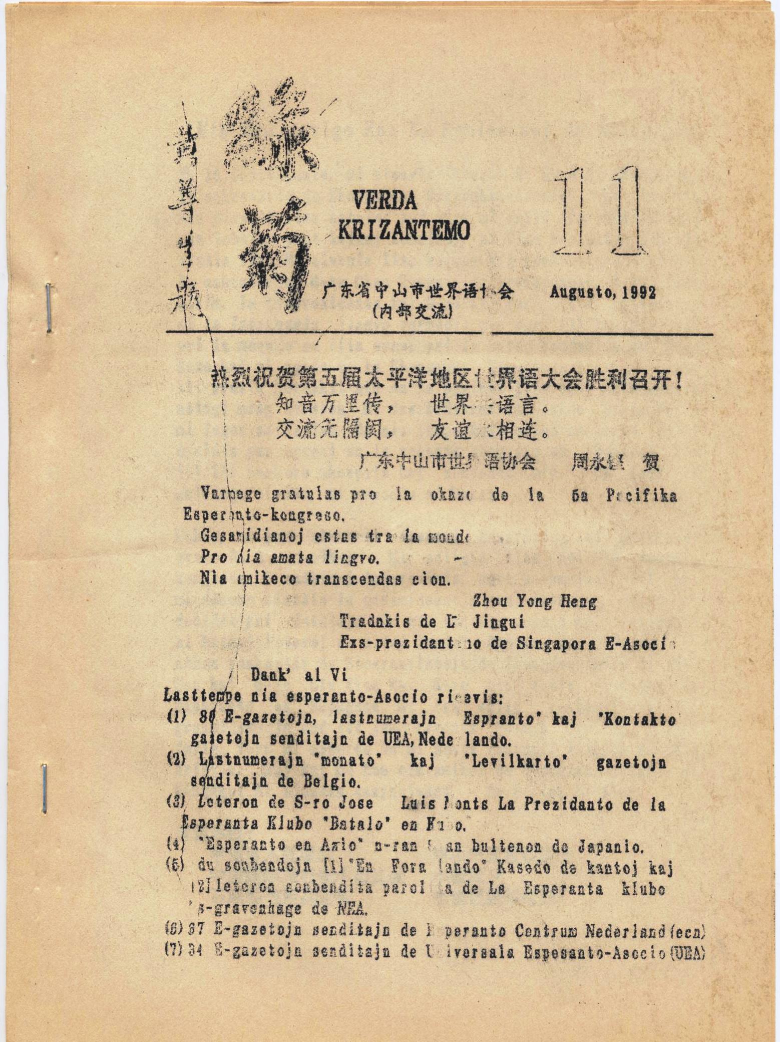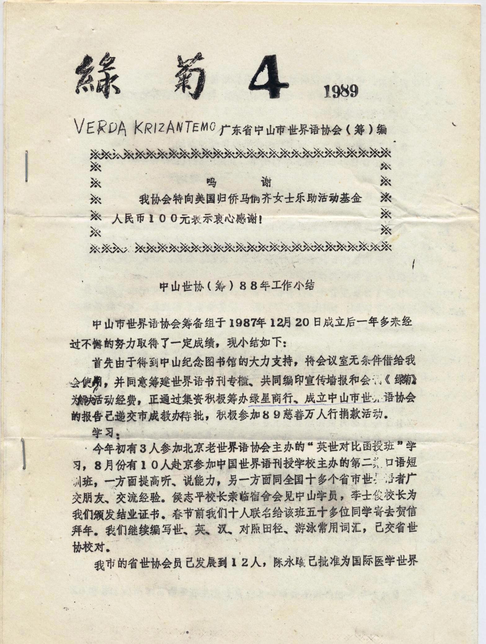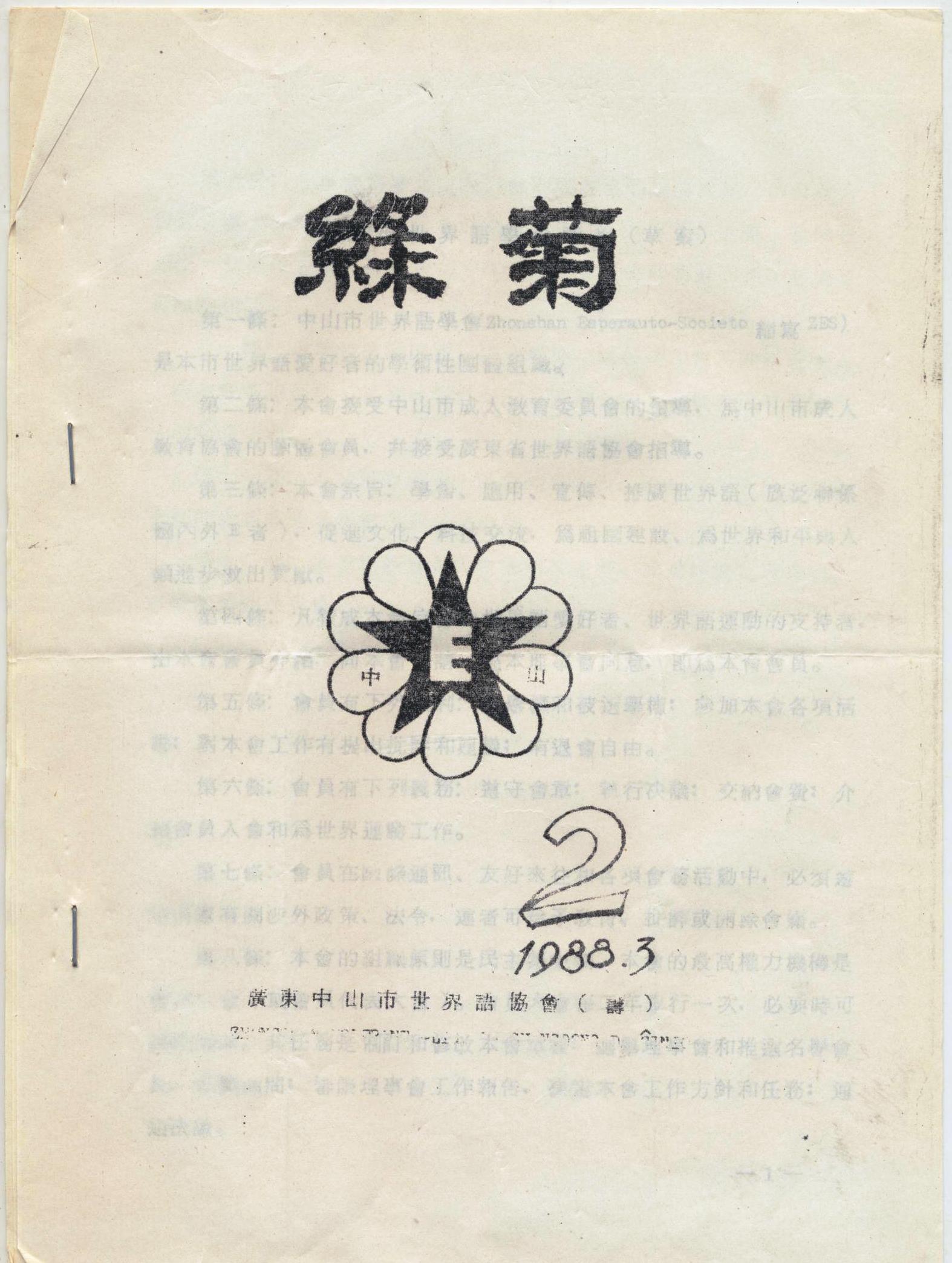 中山市世界语协会(筹)《绿菊》1988年第2期