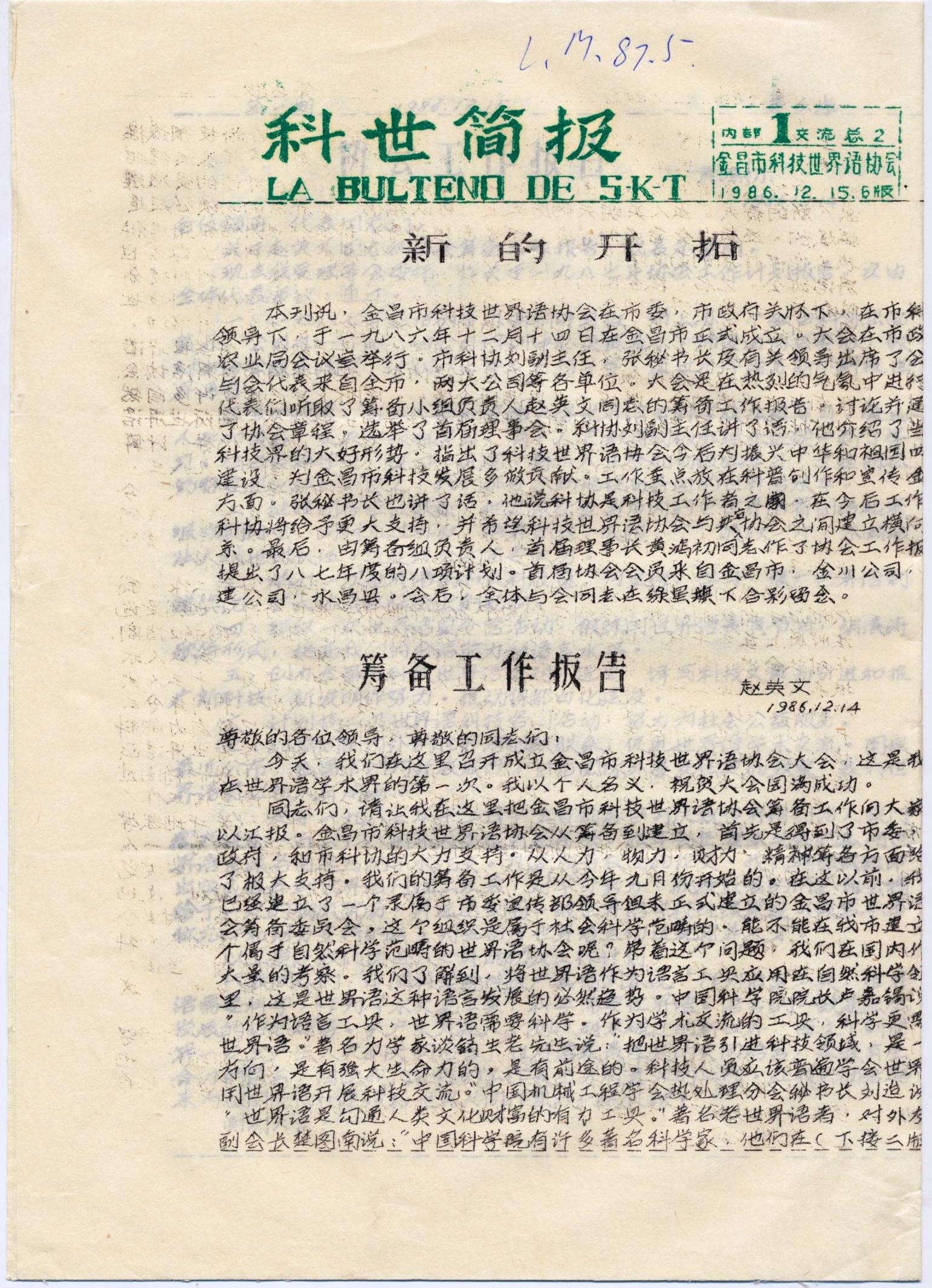 兰州世界语学会《La Vojo》副刊“Urania”1-2期
