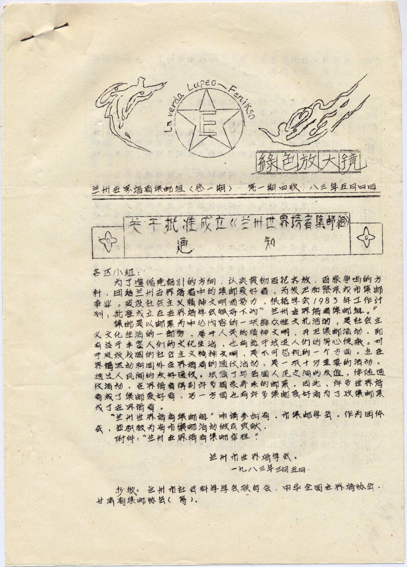 兰州世界语者集邮组《绿色放大镜》1983年第1、4期