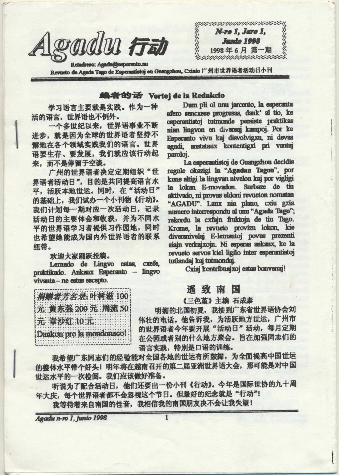 广州世界语者活动日小刊《Agadu》1989第1、4期
