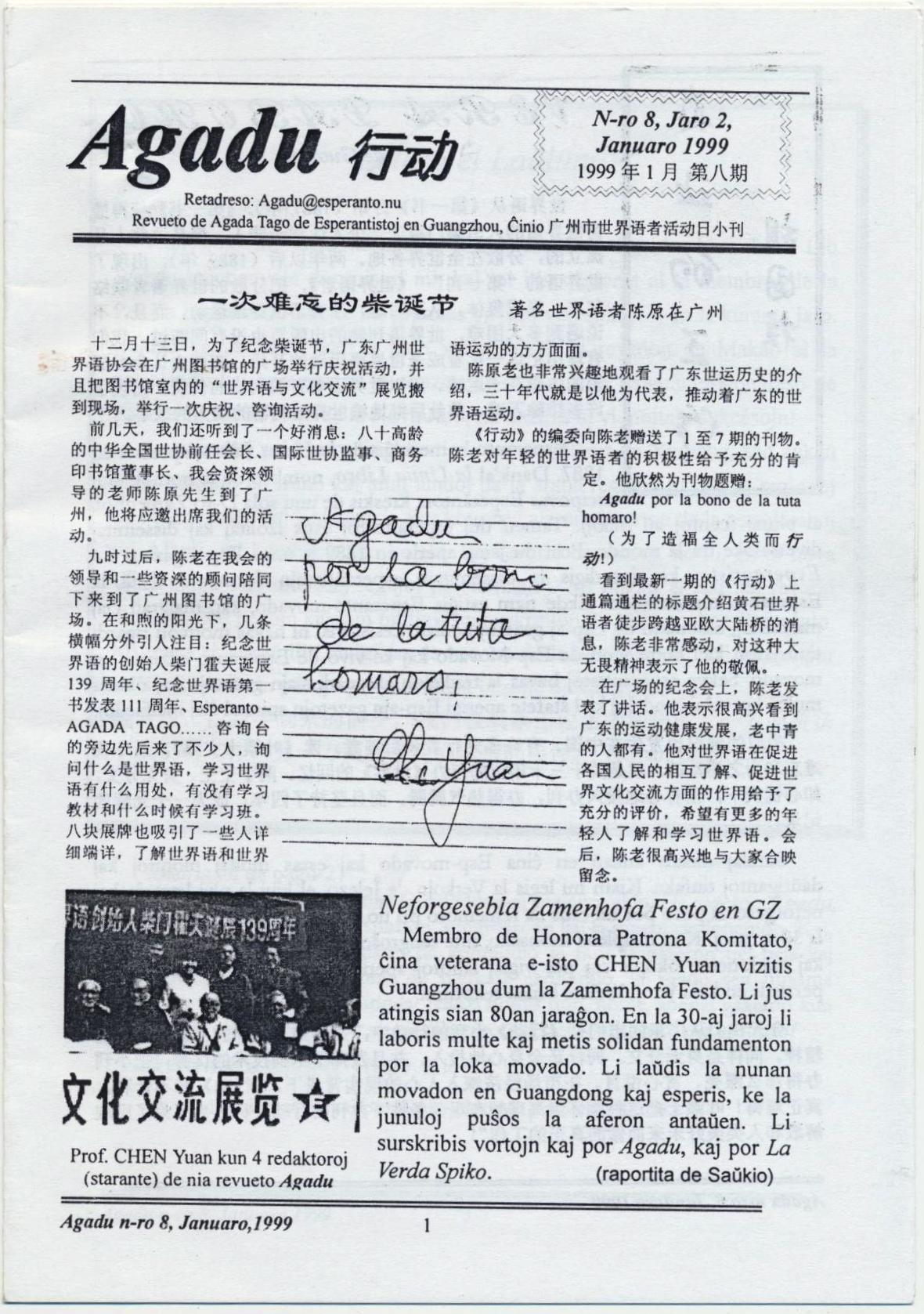 广州世界语者活动日小刊《Agadu》1999第8、12、14、16、17期4期