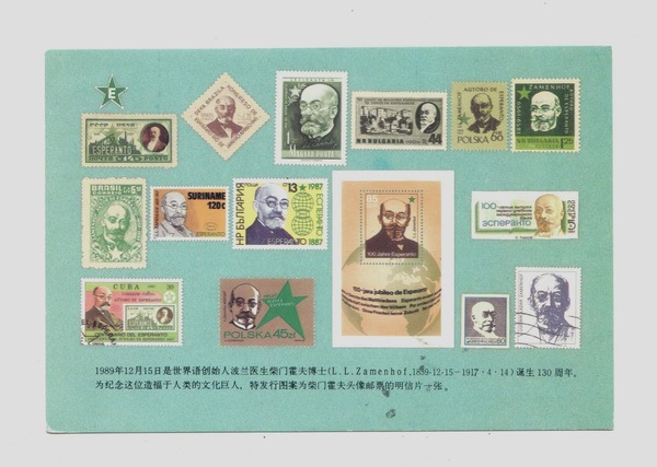 1989年12月15日北京世协寄给祝明义的“柴门霍夫诞生130周年”明信片