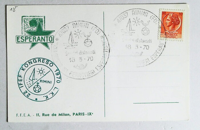 1970年里米尼第22届国际铁路员工世界语大会明信片