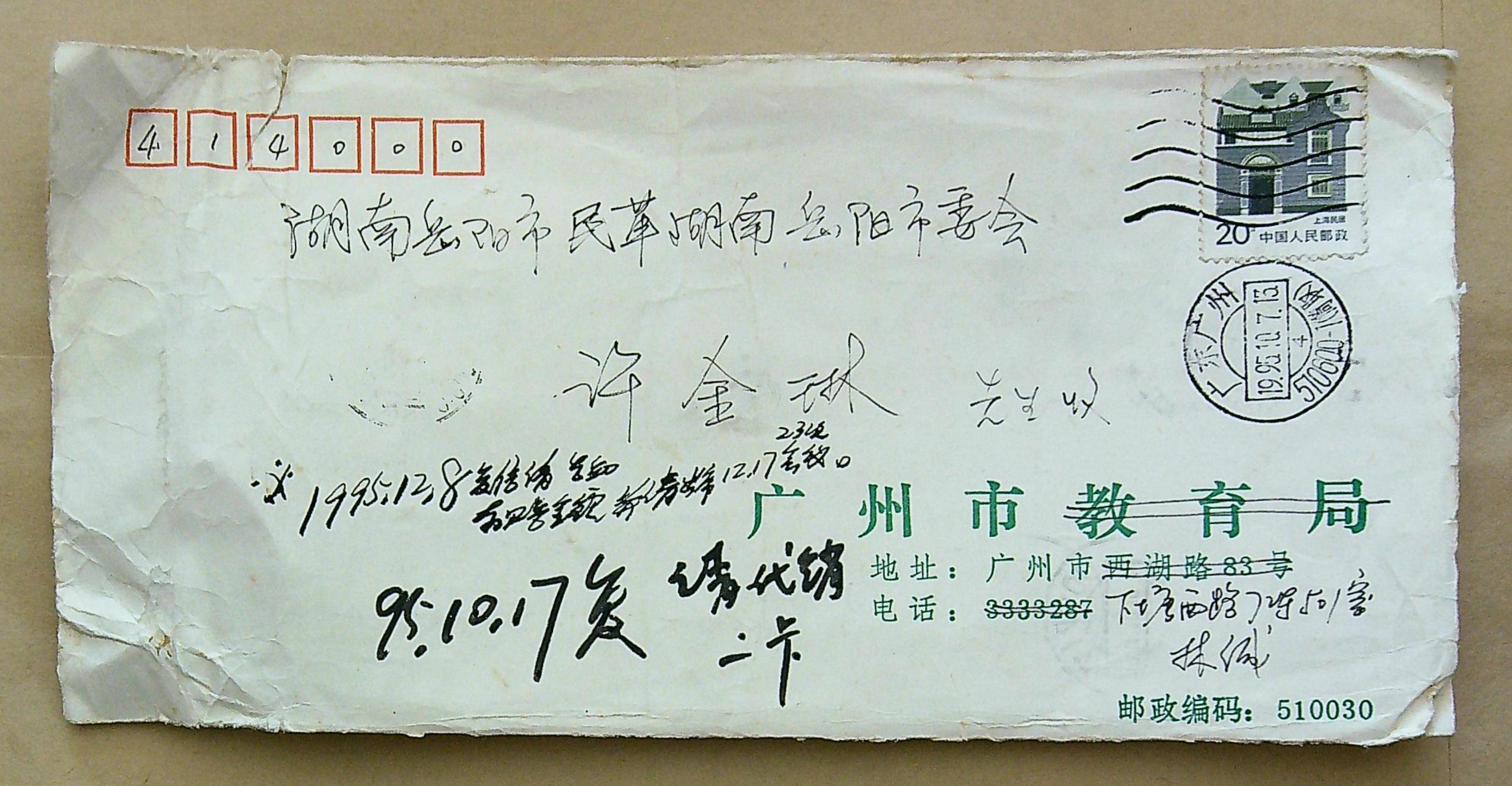 1995年10月7日林力源致信许金林所使用的信封