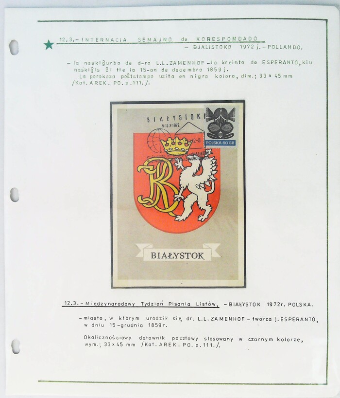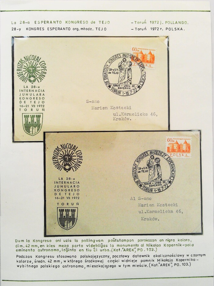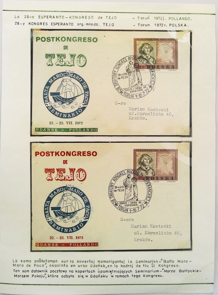 1972年托伦第28届国际青年世界语大会会后大会明信片展片