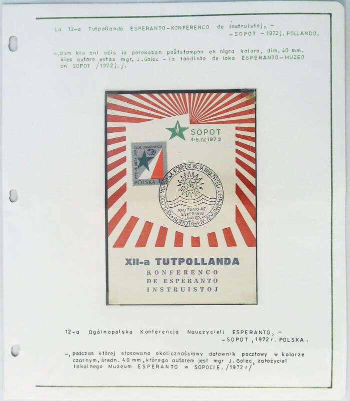 1972年索波特世界语博物馆开馆纪念戳明信片