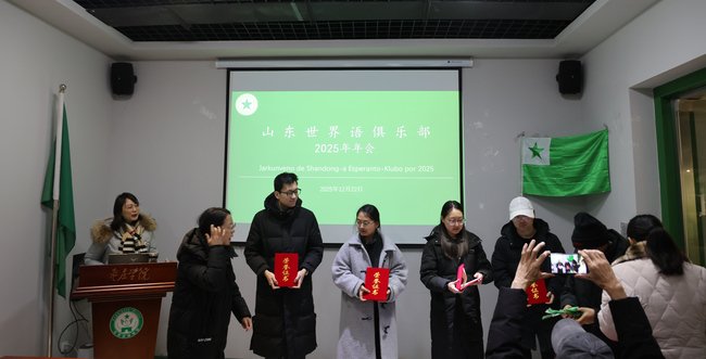 年会在全体与会成员合影后落下帷幕。此次年会的成功举行为俱乐部2025年的工作画上圆满的句号并为下一年度工作开展掀开了新的篇章。相信在全体会员的共同努力下,山东世界语俱乐部将打造成为深具全国影响力的世界语品牌。 (图文报道:李博川 审稿:张坤)