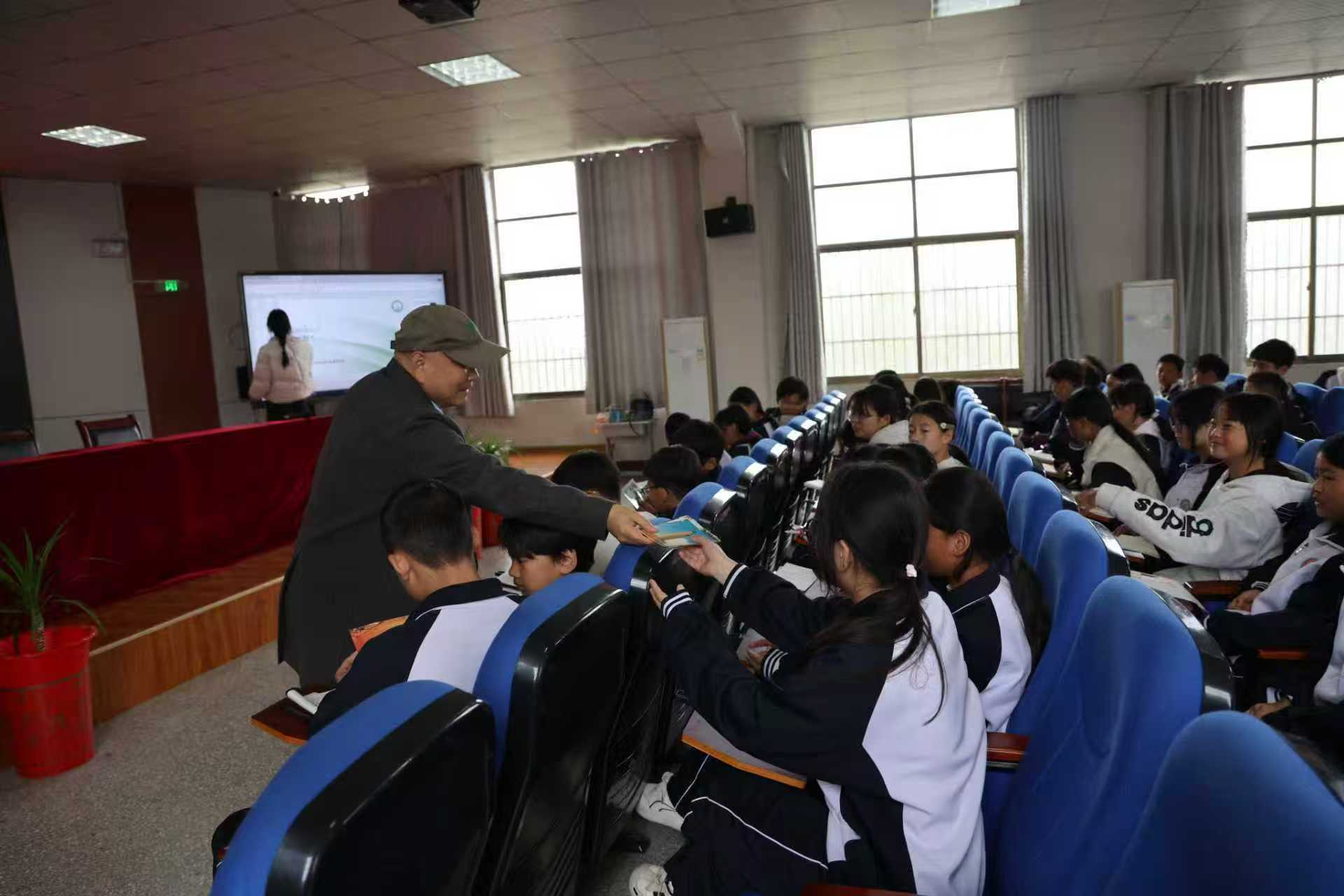活动伊始,市中区教体局关工委常务副主任程恒田对世界语博物馆一行的到来表示热烈欢迎,并简要介绍了关工委的工作业务和“世界语进校园”的意义。孙明孝代表博物馆向学校捐赠了《世界语基础》《世界语概论》等世界语图书,以及由博物馆开发的文创产品——伏里土陶班墨奚柴笔筒。捐赠仪式上,孙明孝表示,世界语作为促进国际交流的文化桥梁,进校园活动有助于激发学生对多元文化的兴趣,希望未来能与学校深化合作,共同推动乡村教育国际化发展。