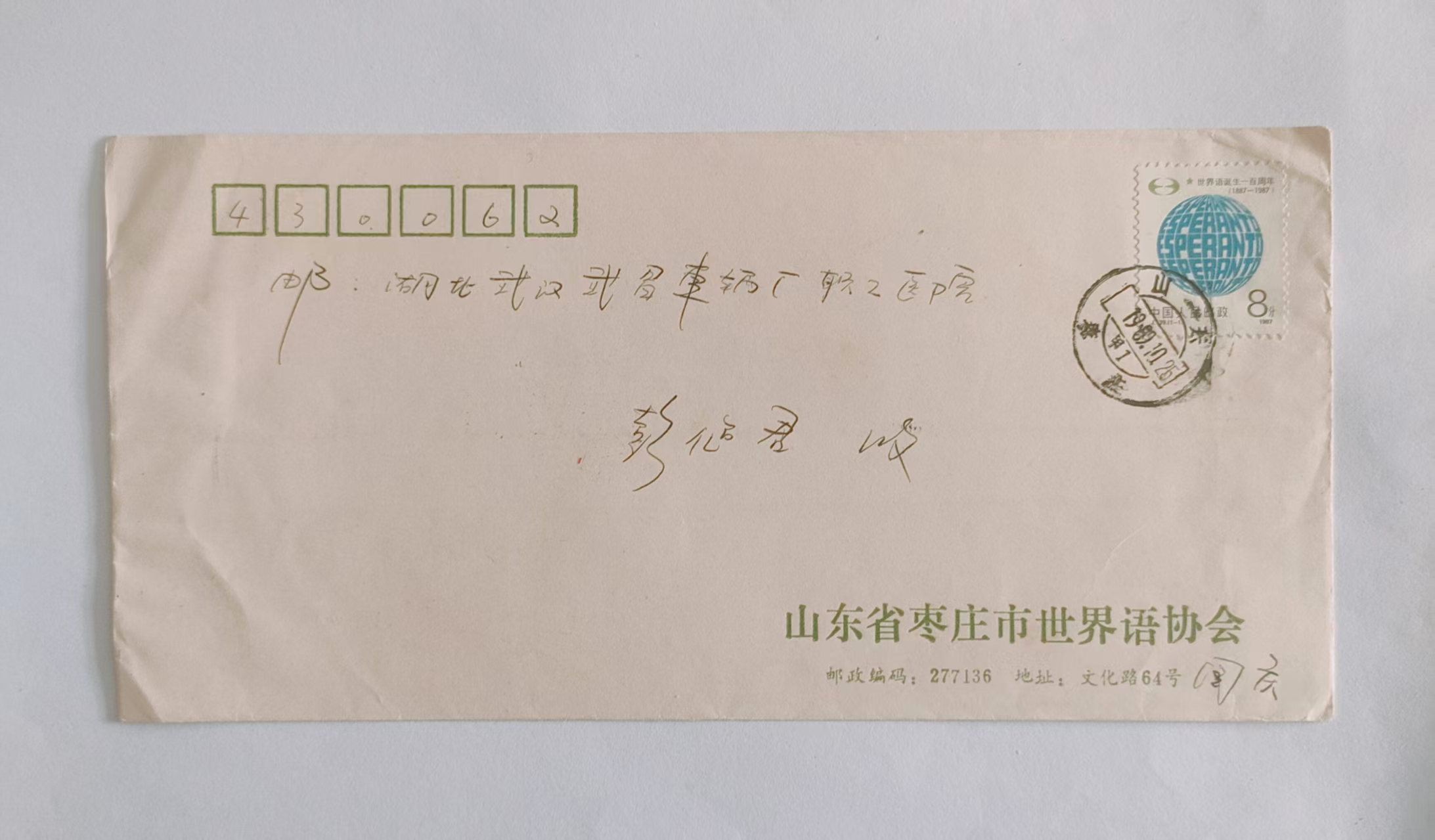1992年中华全国世界语协会给彭健君邮寄资料的信封