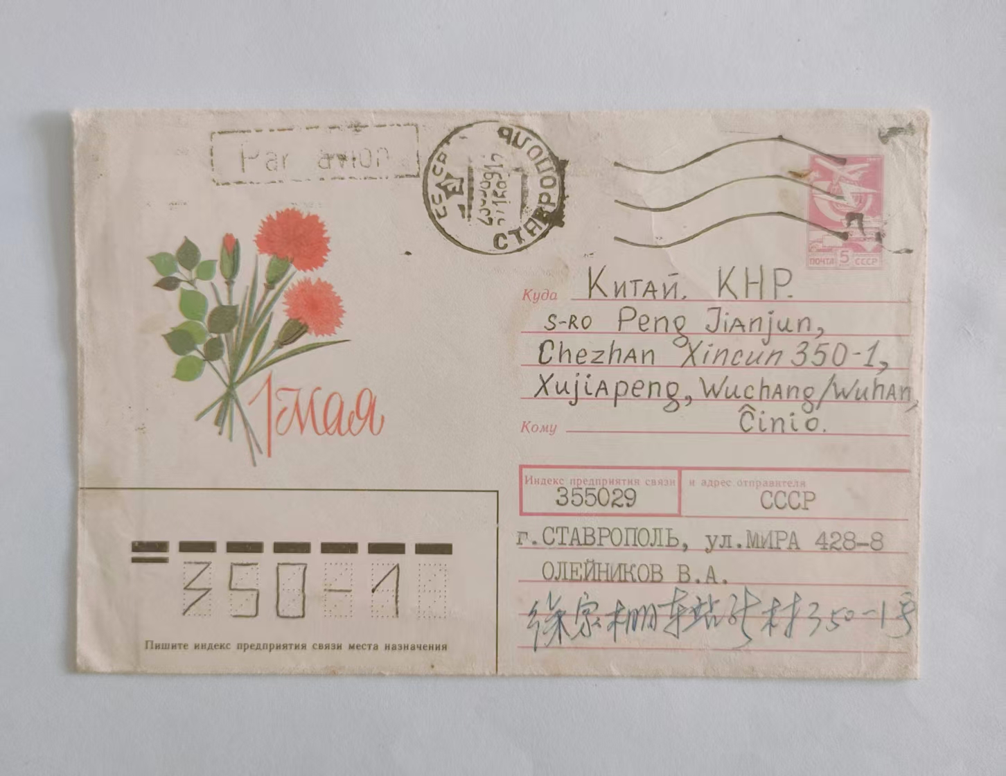 苏联Vjaĉesstav 寄给彭健君的明信片