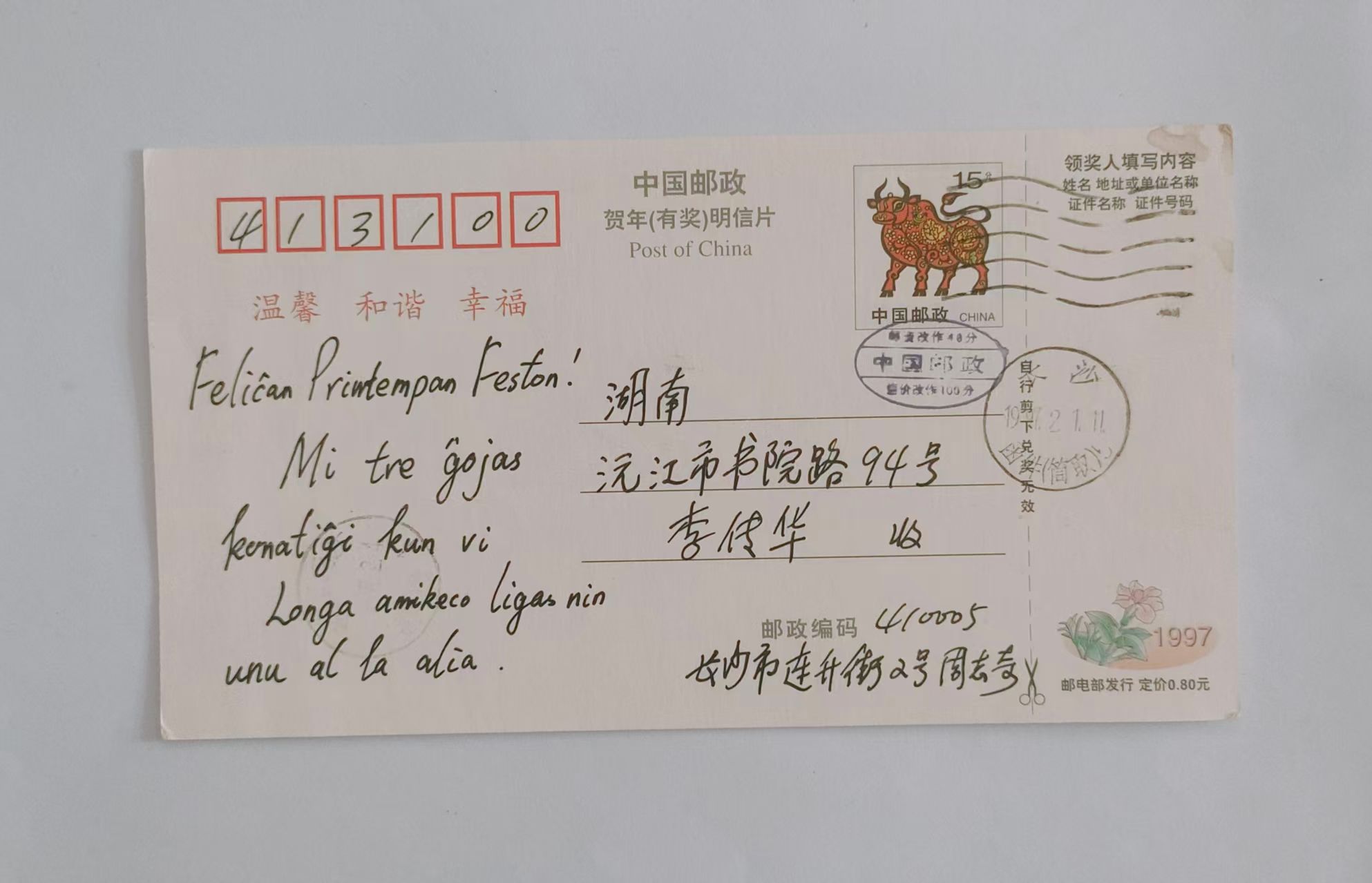 1989年曹雄林寄给彭健君纪念柴门霍夫诞辰130周年的明信片