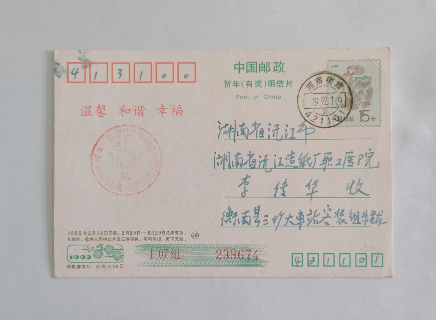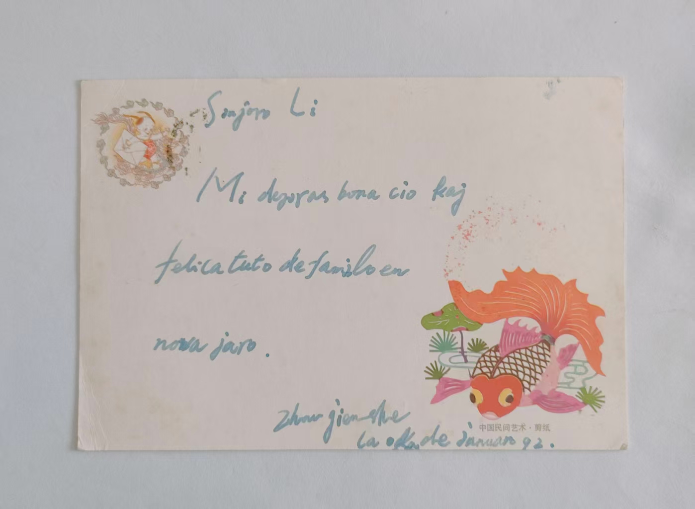 1992年朱建龙寄给李传华的贺年明信片