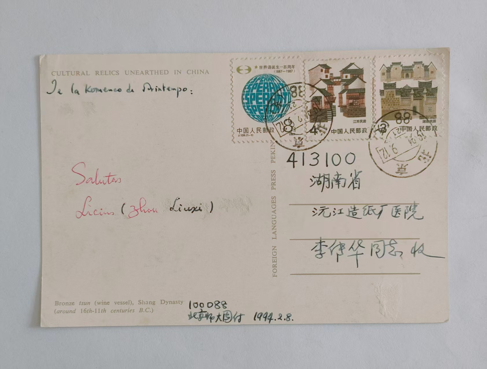 1989年张力波寄给李传华纪念世界语创始人柴门霍夫博士诞生一…