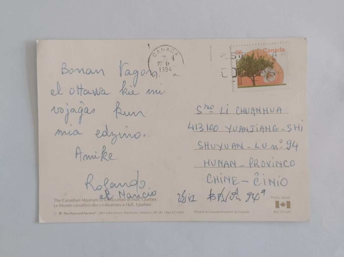 1988年10月27日加拿大世界语者寄给崔国庆的明信片