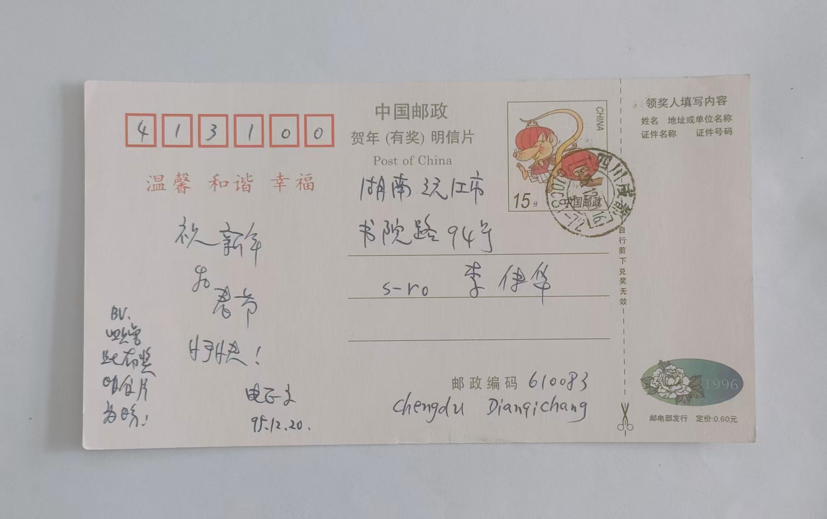 1999年鄂自力寄给李传华的贺年明信片