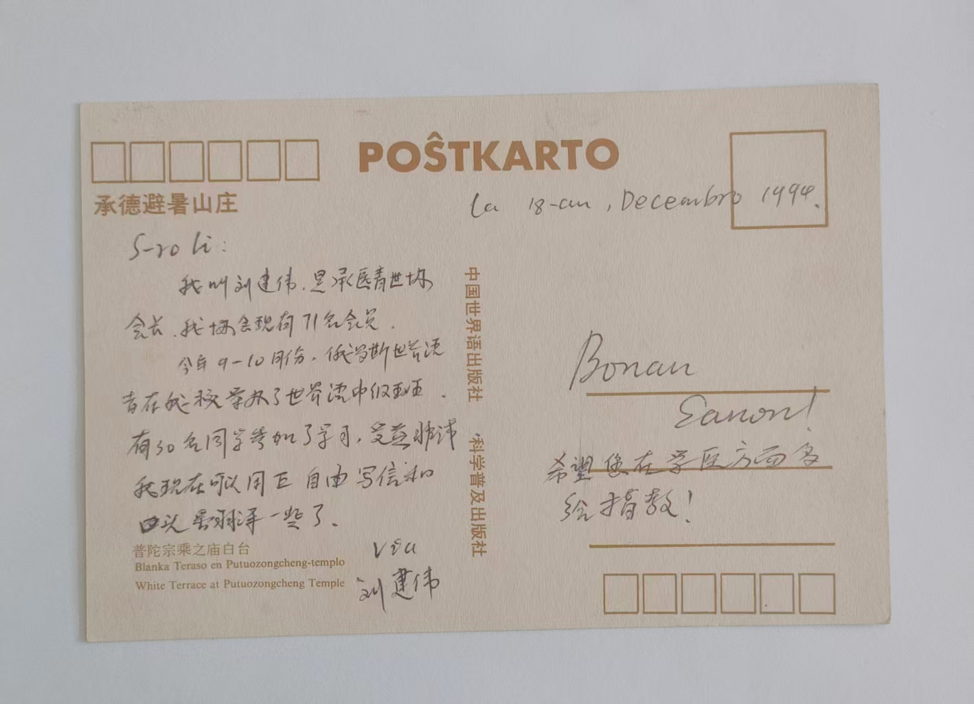1999年李传华与法国世界语者Roland Genot通信的信封
