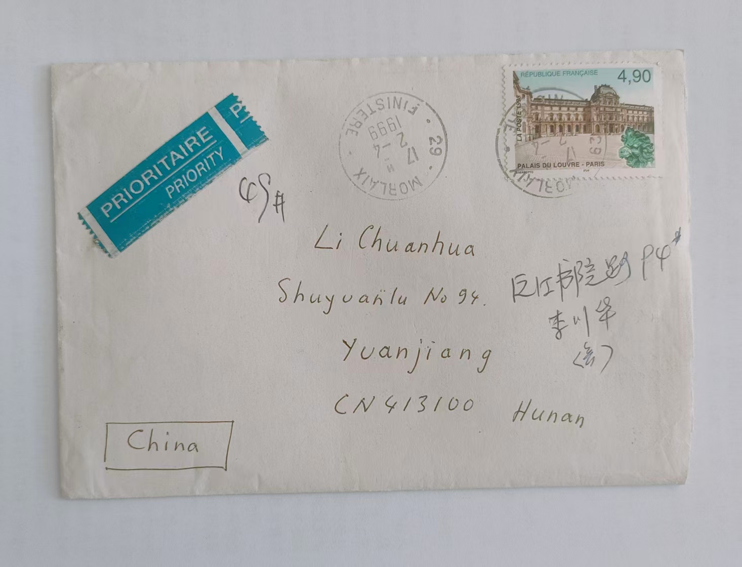 1999年法国世界语者Nikol与李传华通信的信封