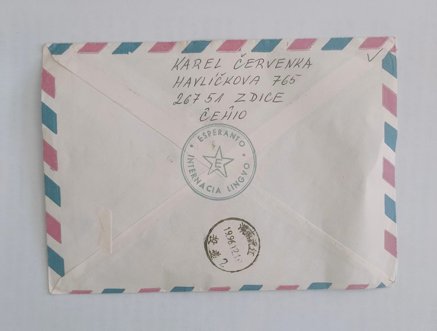 1996年捷克世界语者KAREL ĈERVENKA通信的信封