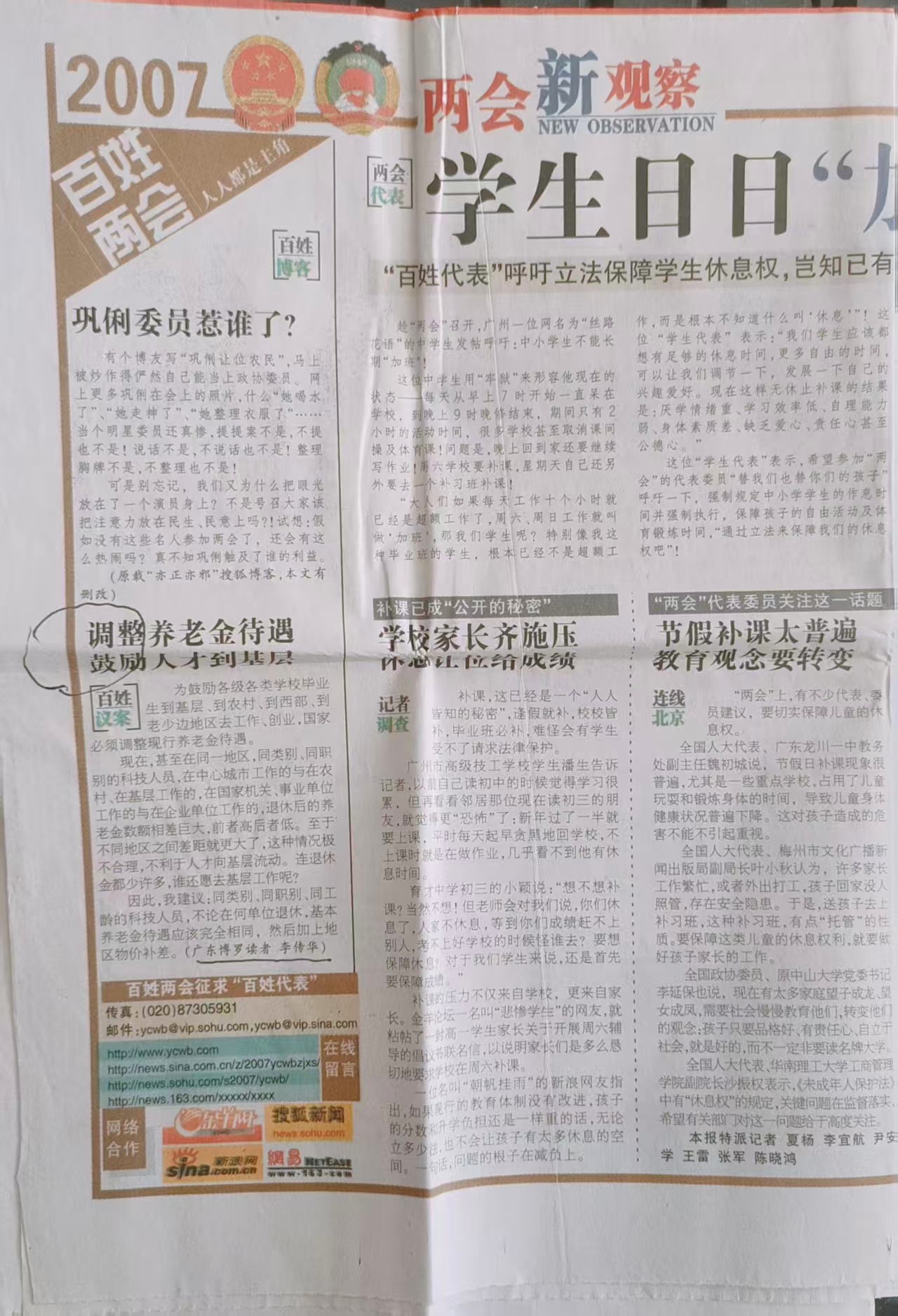 2007年3月9日羊城晚报刊登李传华关于“调整养老金待遇鼓励人…