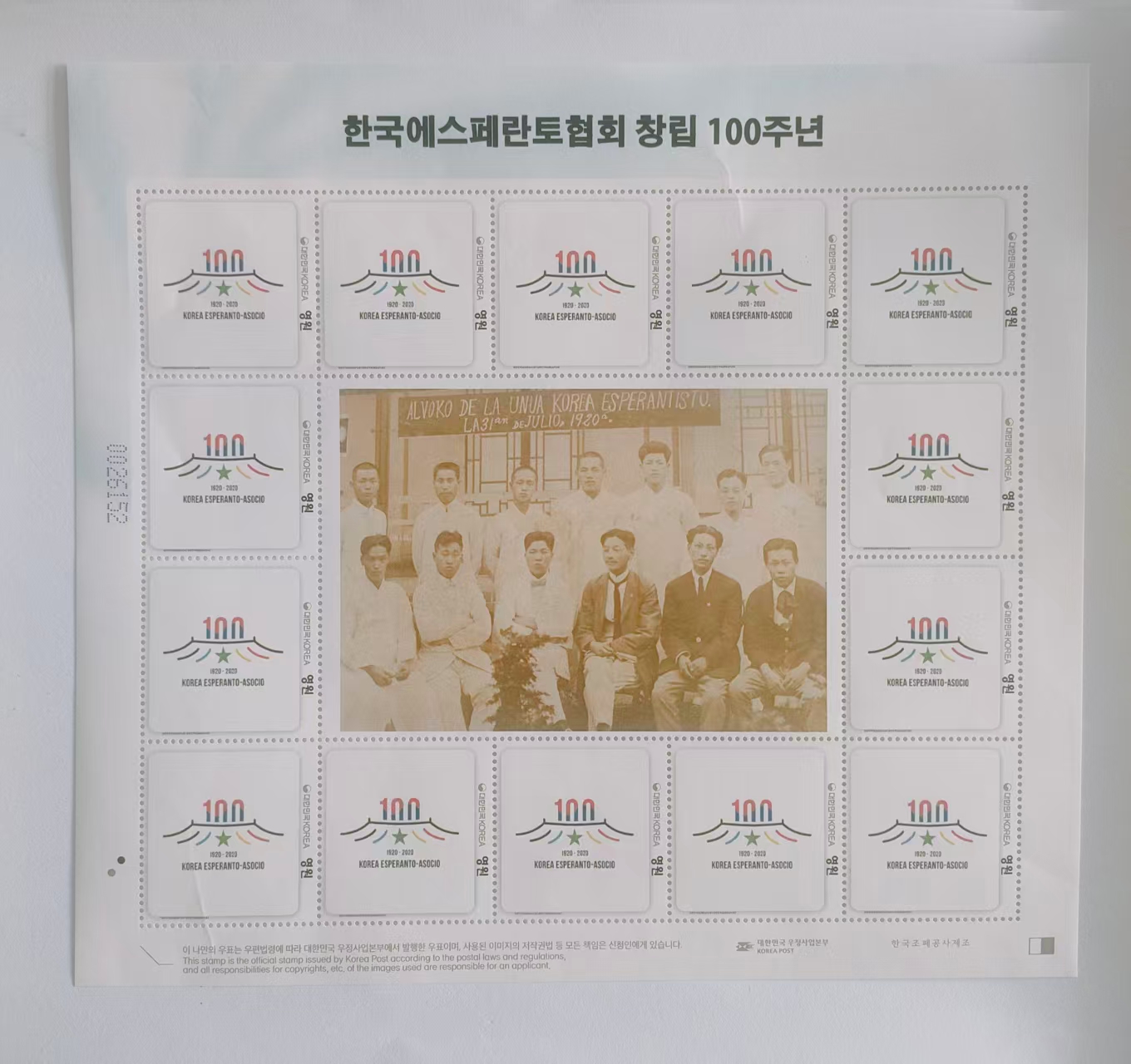 2020年韩国世界语协会成立100周年纪念邮票(1)