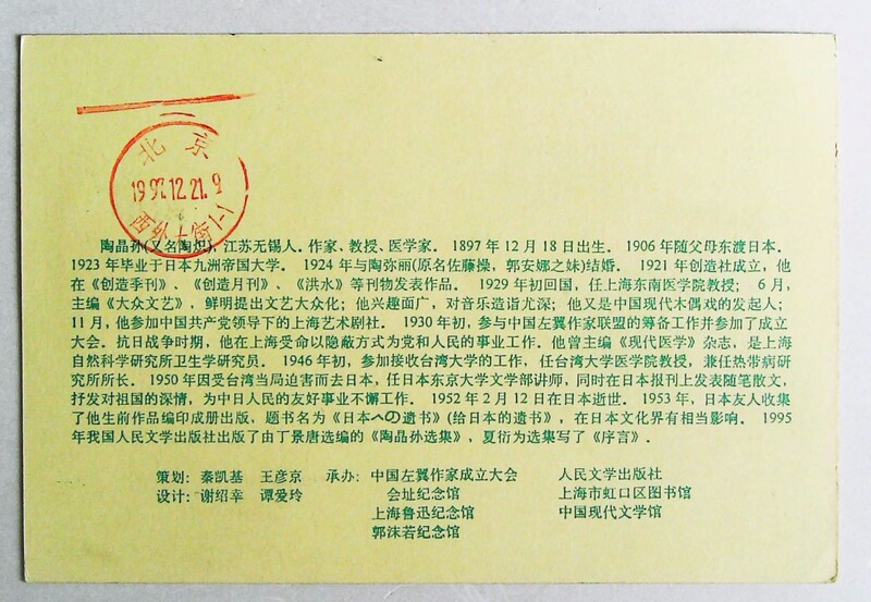 1997年陶晶孙诞生100周年明信片