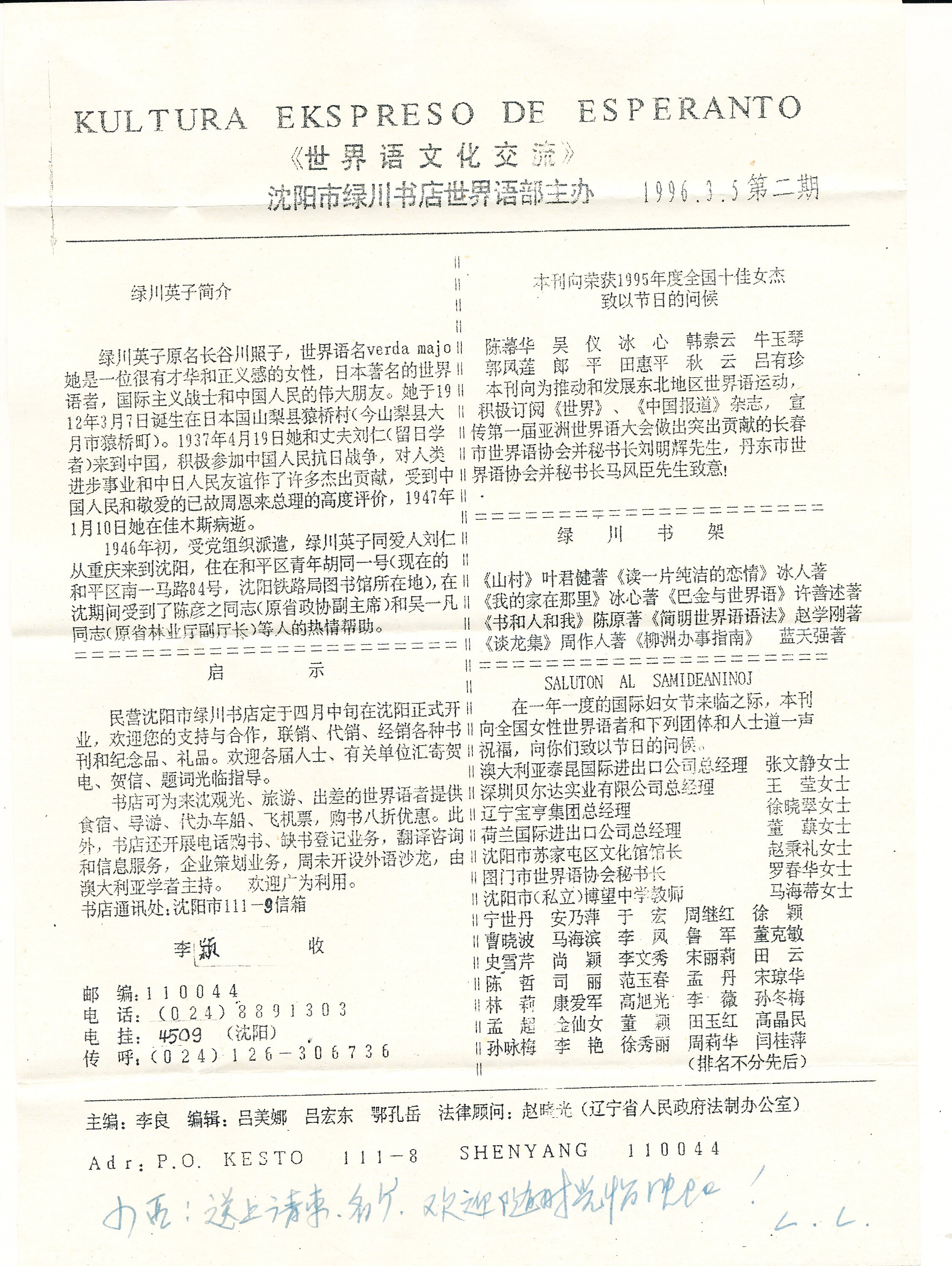 1985年12月《世界语者》编辑部“欢迎订购《世界语者》杂志”