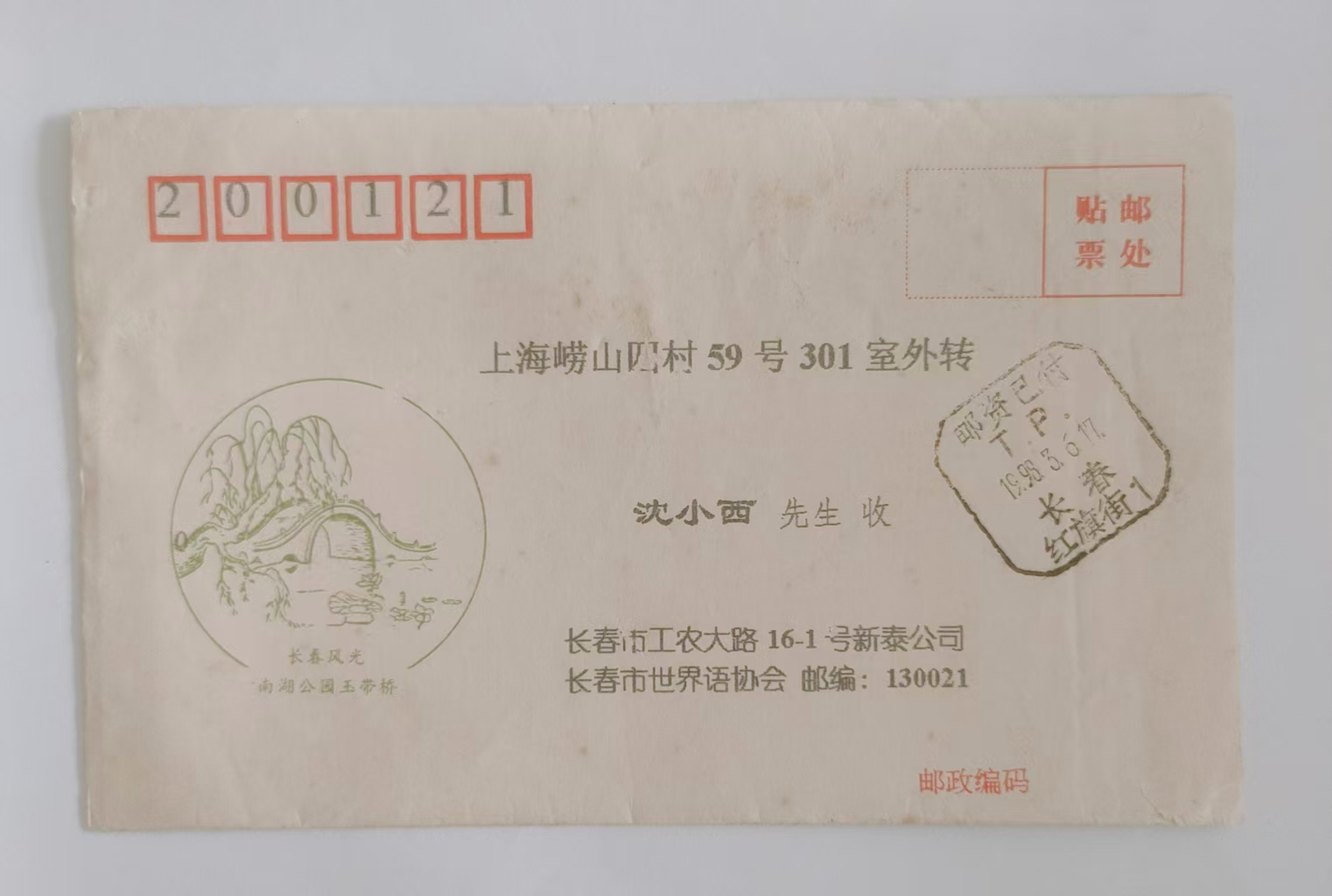 1999年长春世界语协会张吉平给沈小西寄资料的信封