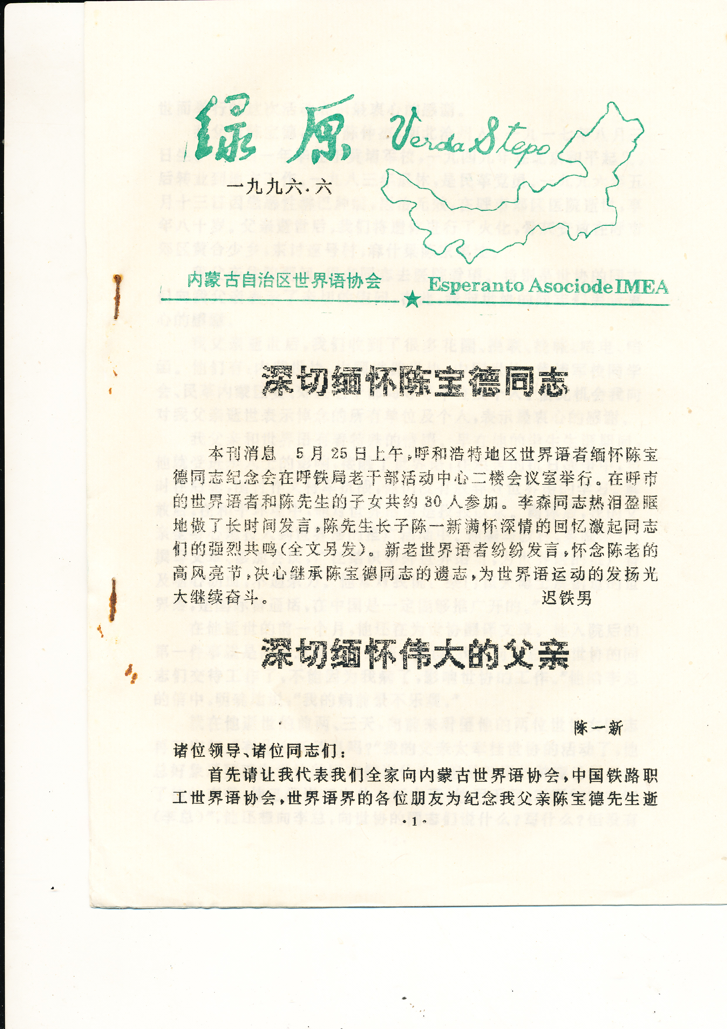 1996年内蒙古世界语协会《绿原》第六期