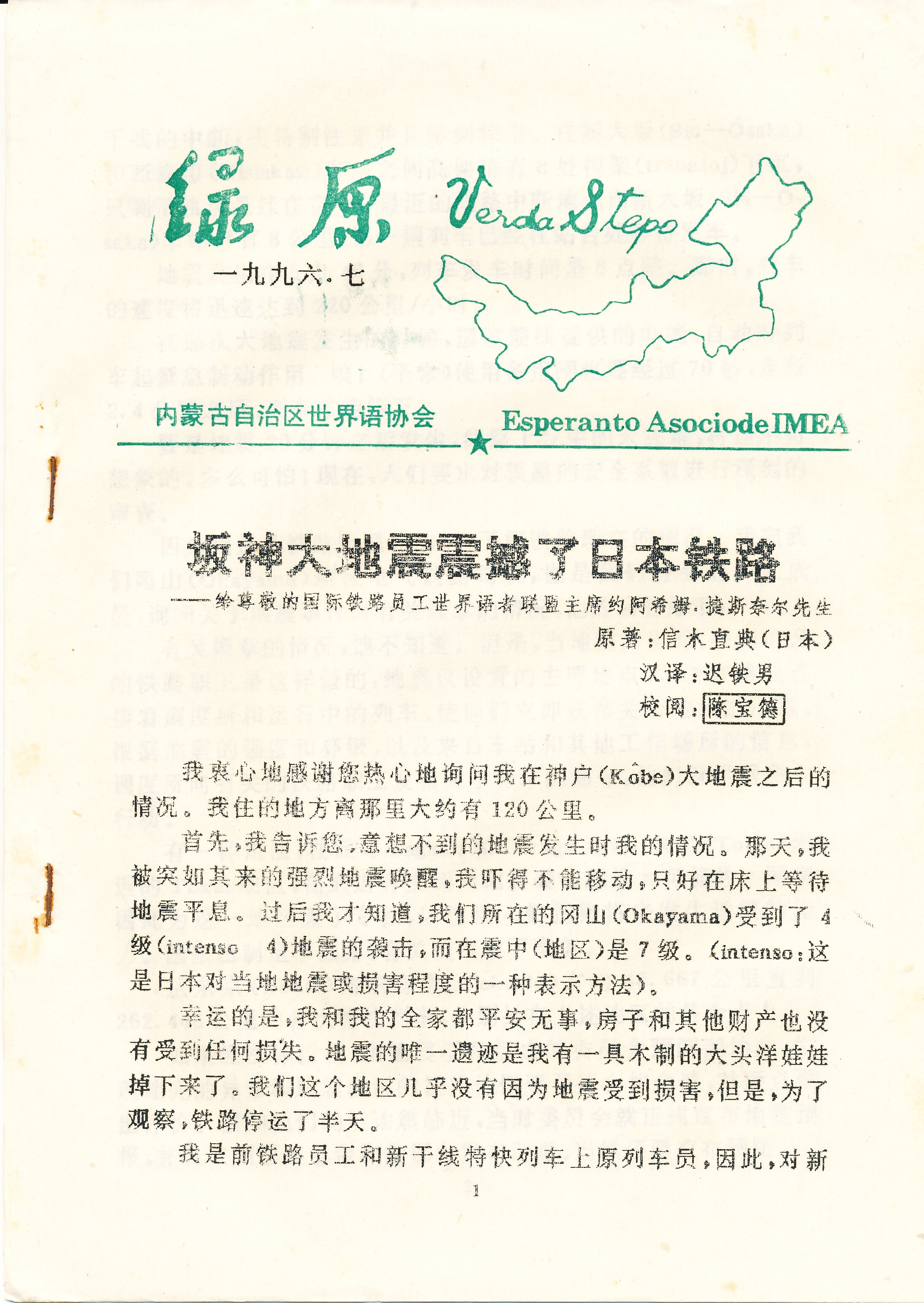 1996年内蒙古世界语协会《亚洲与21世纪》