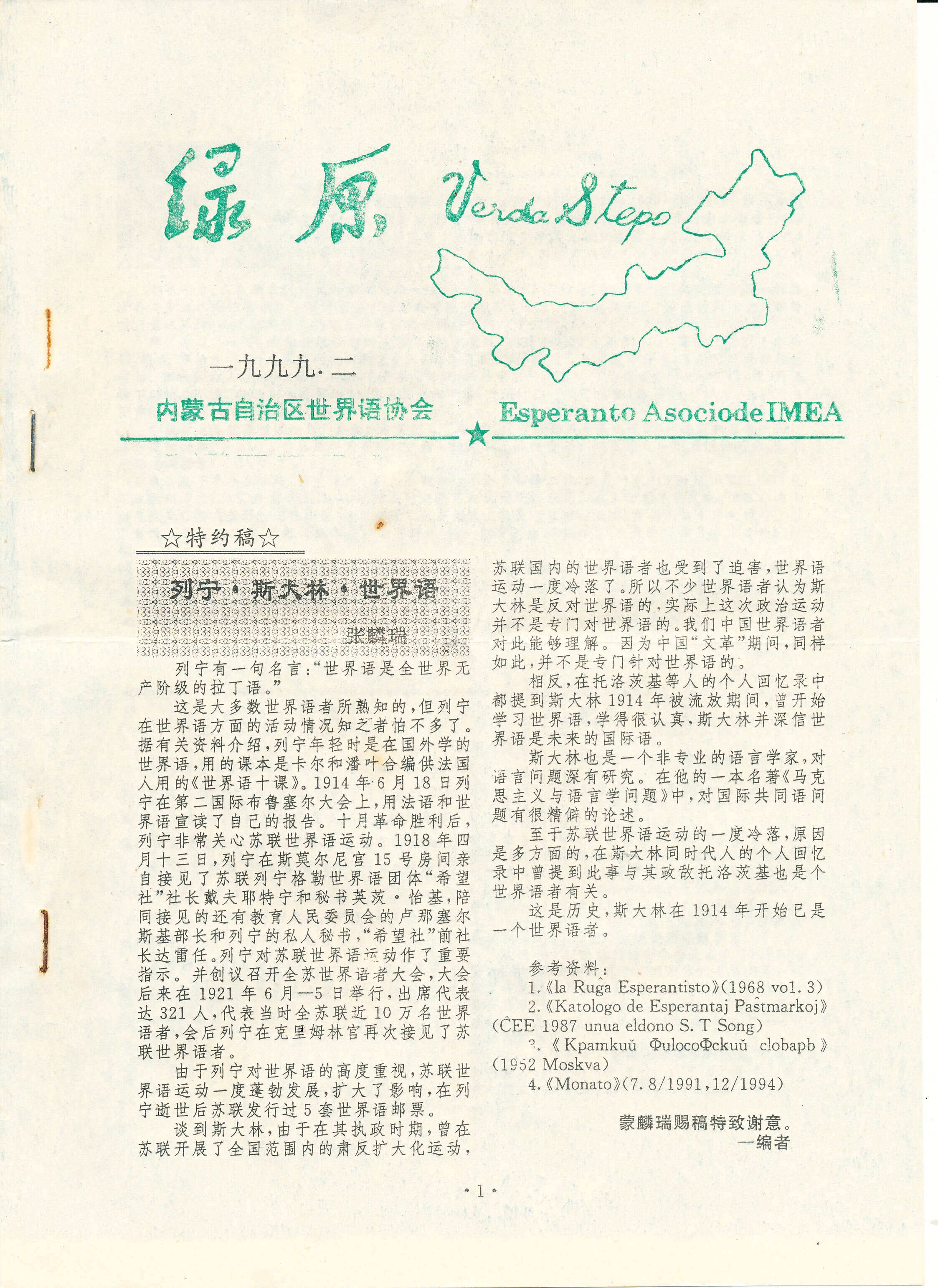 1996年内蒙古世界语协会《亚洲与21世纪》