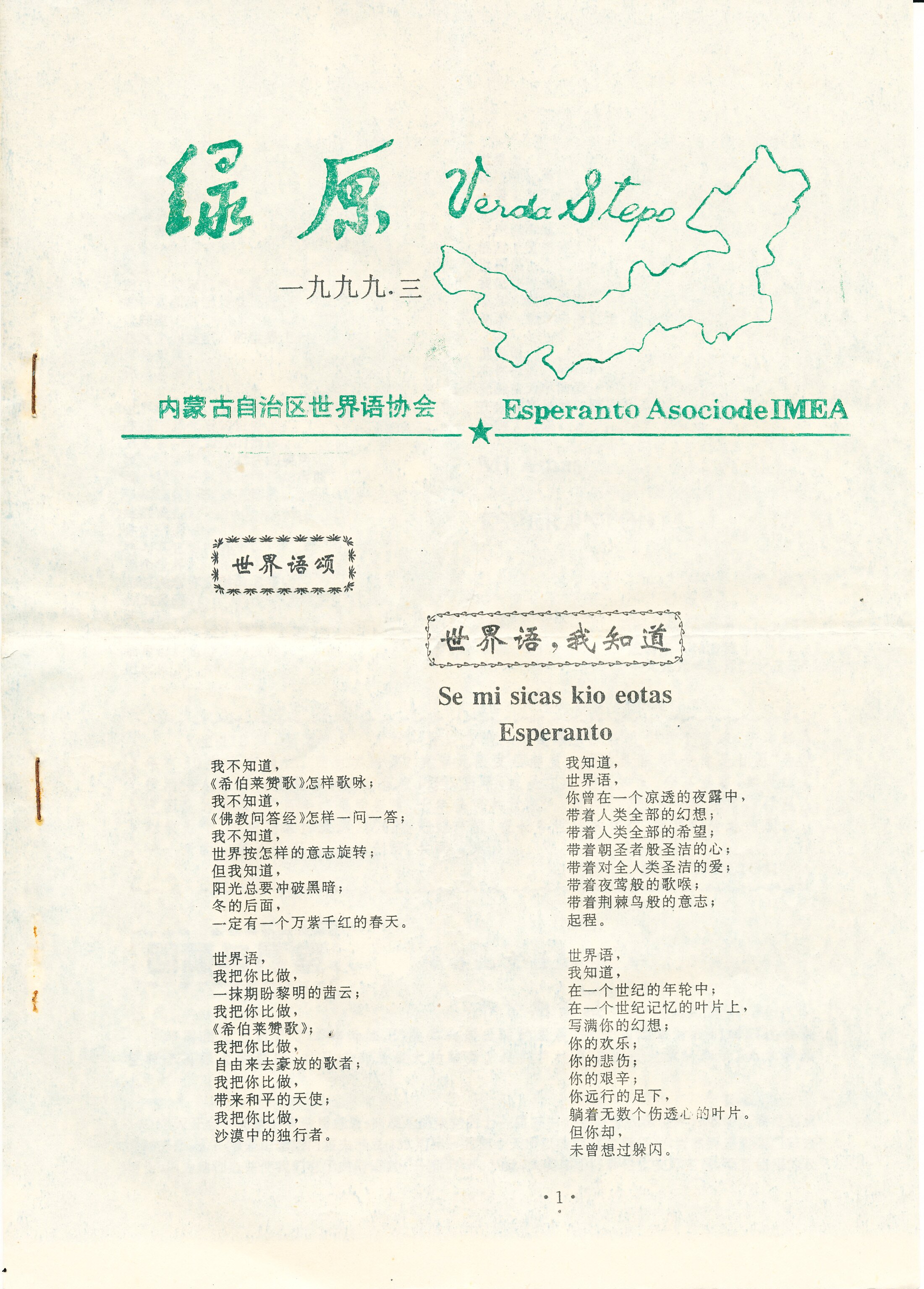 1999年内蒙古世界语协会《绿原》第一期