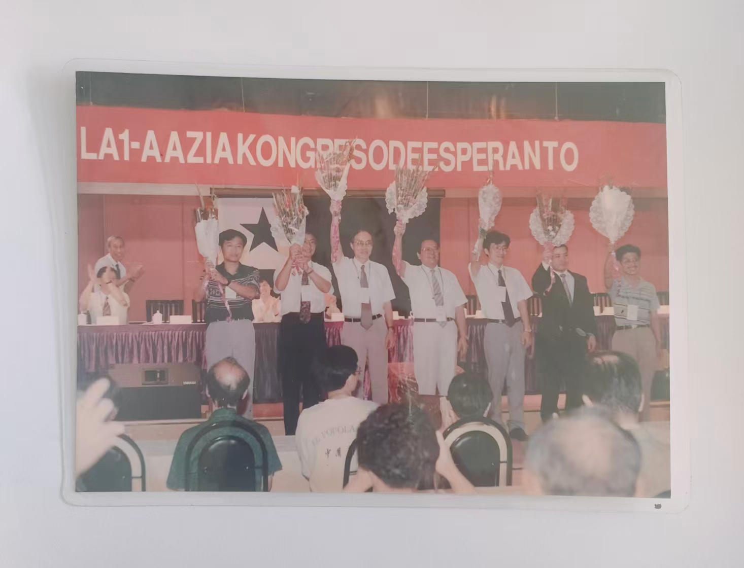 1996年上海首届亚洲世界语大会向大会工作人员献花的照片